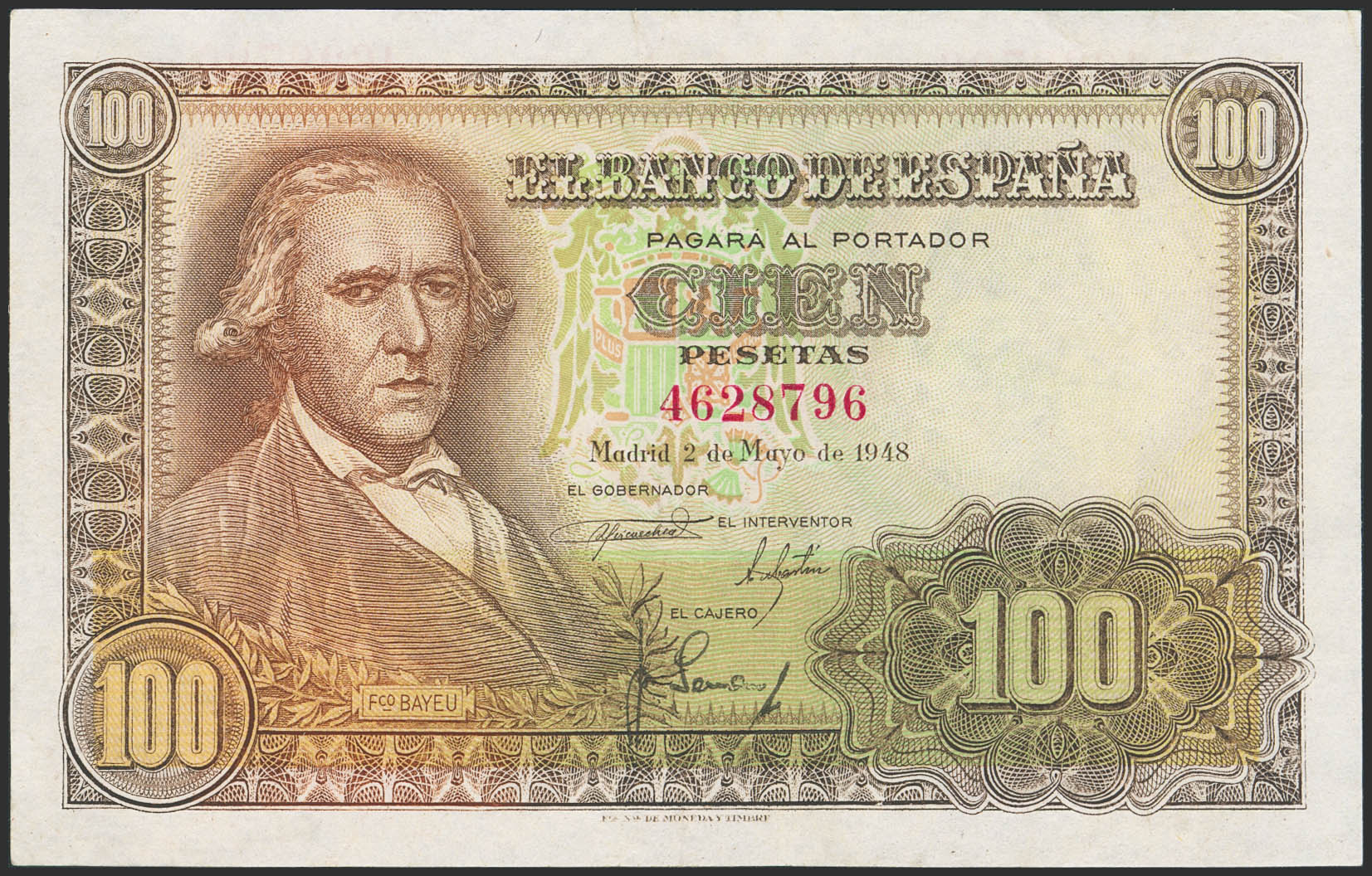 100 Pesetas. 2 de Mayo de 1948. Sin serie. (Edifil 2023: 456). Conserva todo su apresto original. EBC.