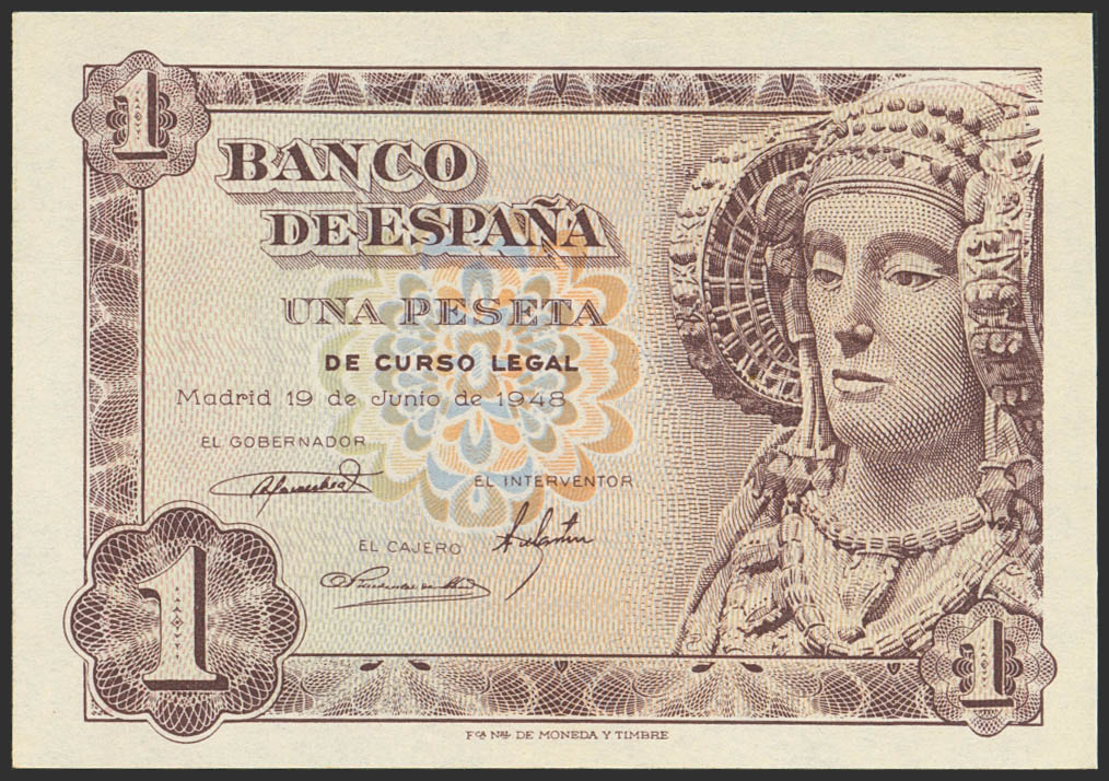 1 Peseta. 19 de Junio de 1948. Sin serie. (Edifil 2023: 457). Apresto original. SC.