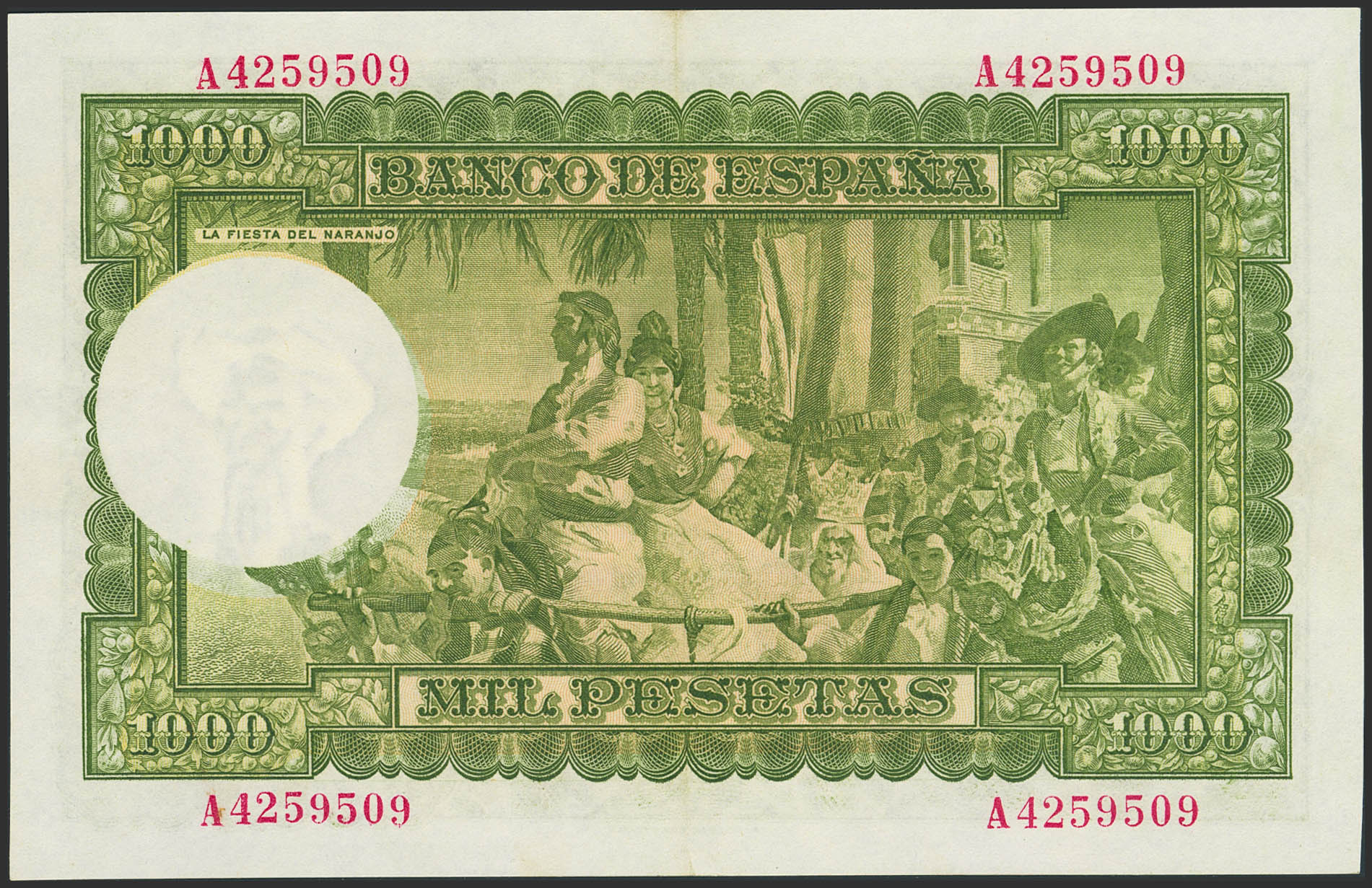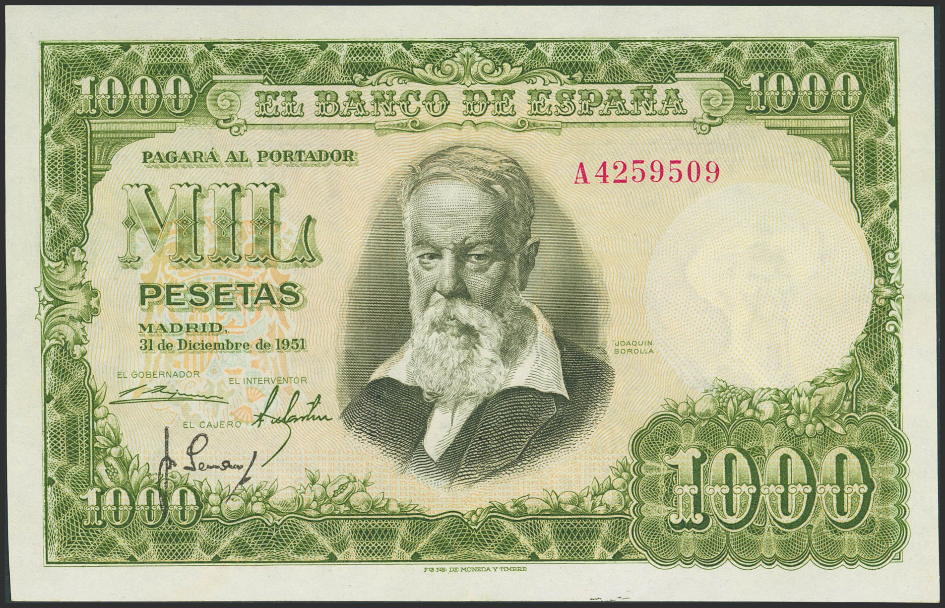 1000 Pesetas. 31 de Diciembre de 1951. Serie A. (Edifil 2023: 463a). Conserva parte de su apresto original. EBC.
