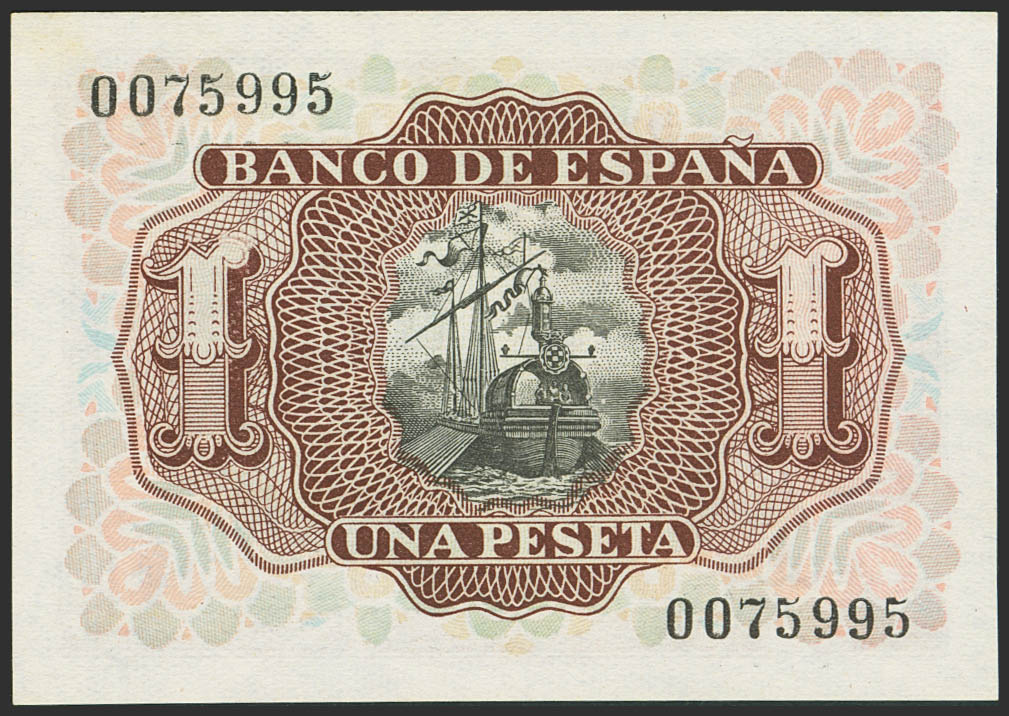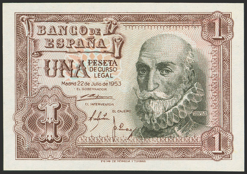 1 Peseta. 22 de Julio de 1953. Sin serie y numeración baja. (Edifil 2023: 465). Apresto original. SC-.