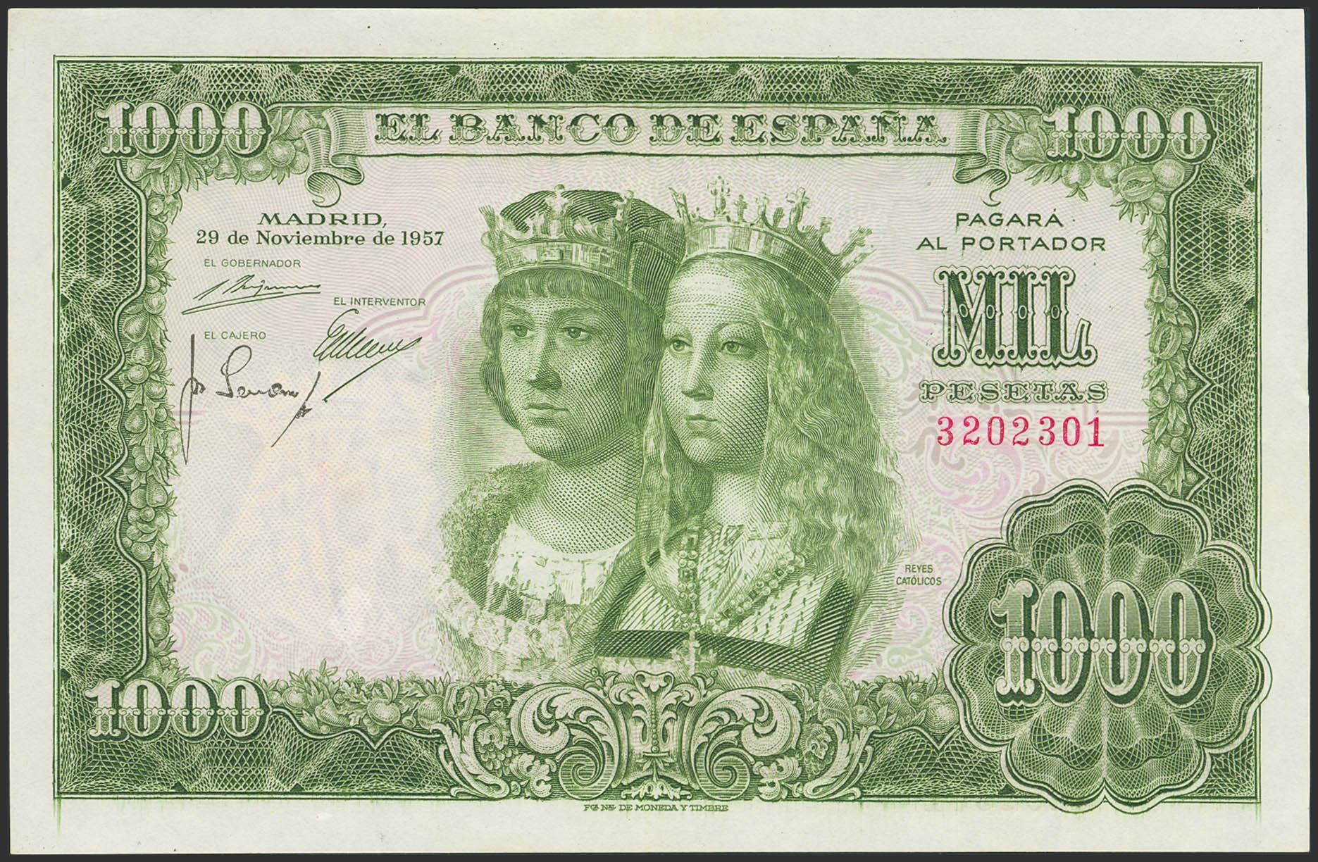 1000 Pesetas. 29 de Noviembre de 1957. Sin serie. (Edifil 2023: 469). Inusual. EBC.