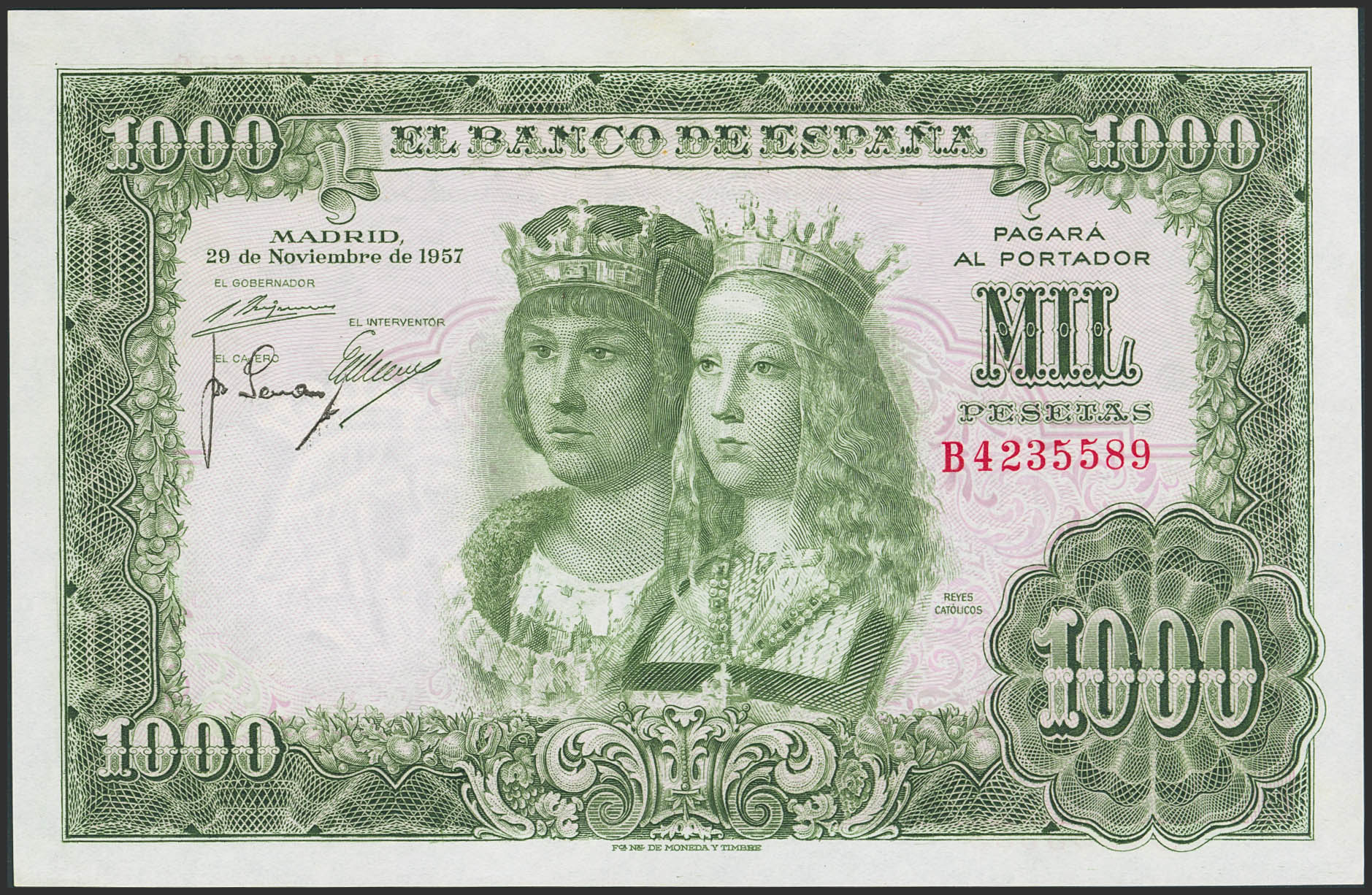 1000 Pesetas. 29 de Noviembre de 1957. Serie B. (Edifil 2023: 469b). Conserva todo su apresto original. EBC.