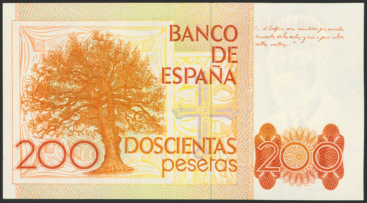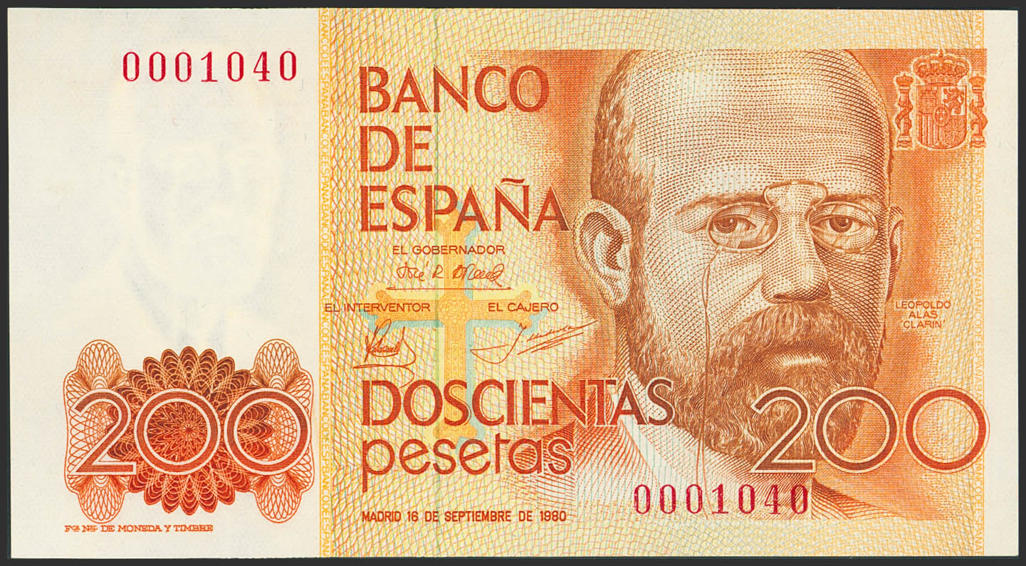 200 Pesetas. 16 de Septiembre de 1980. Sin serie y numeración bajísima. (Edifil 2023: 480). SC-.
