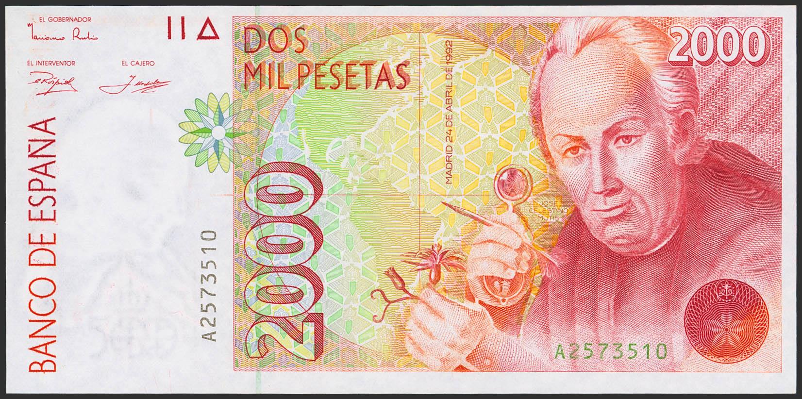 2000 Pesetas. 24 de Abril de 1992. Serie A. (Edifil 2023: 482a). SC.