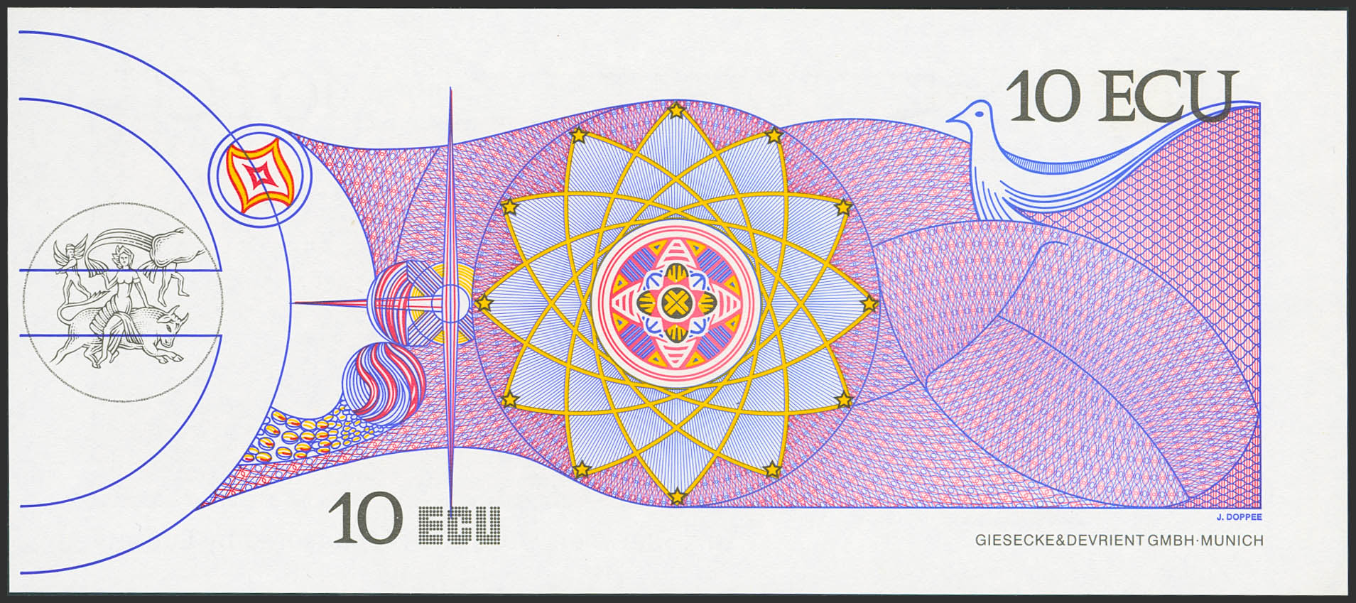 10 Ecu. 1992. SPECIMEN. Billete Promocional de la moneda única Europea, el Ecu, expuesta en el pabellón de la Comunidad Europea con motivo de la Exposición Universal de Sevilla. Muy raro. SC-.