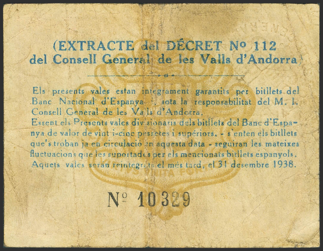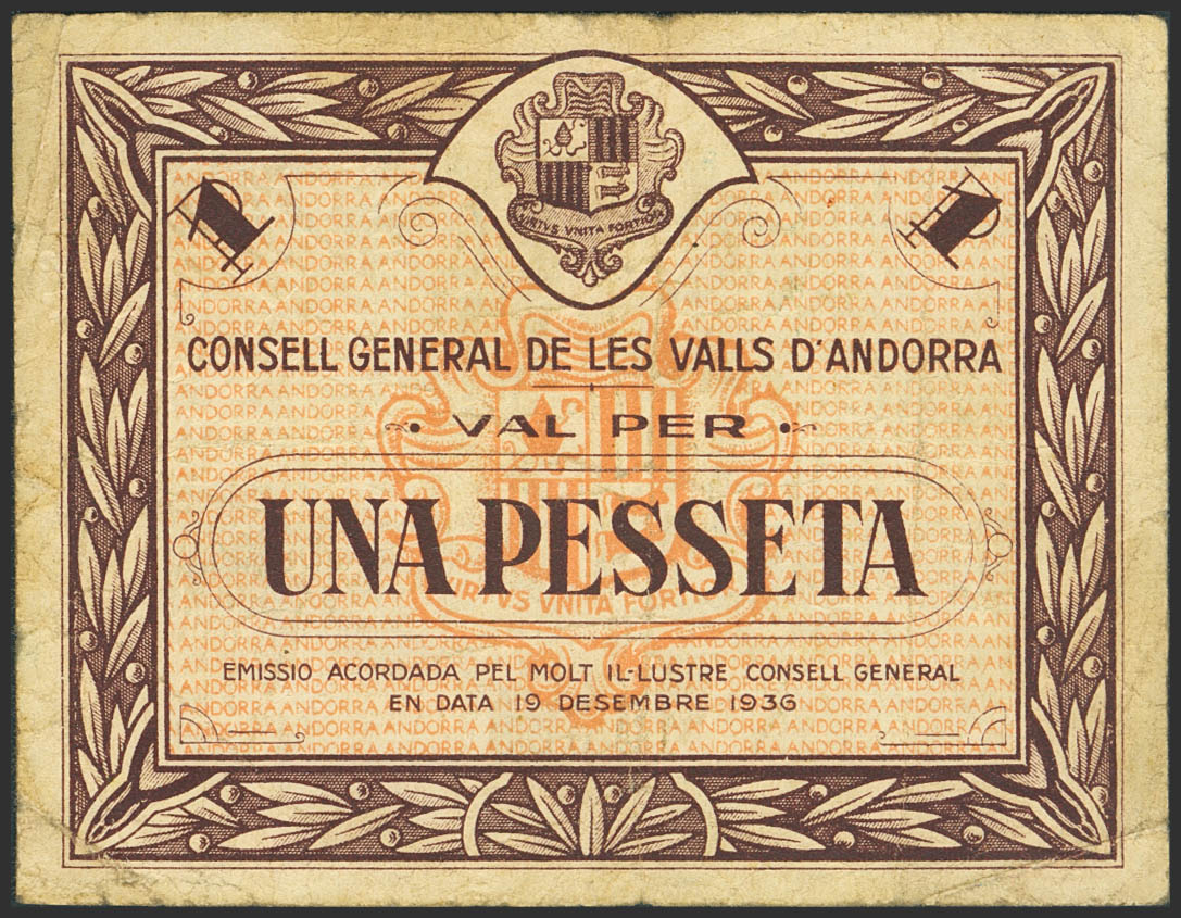 ANDORRA. 1 Pesseta. 19 de Diciembre de 1936. Sin serie. (Edifil 2023: 3). MBC.