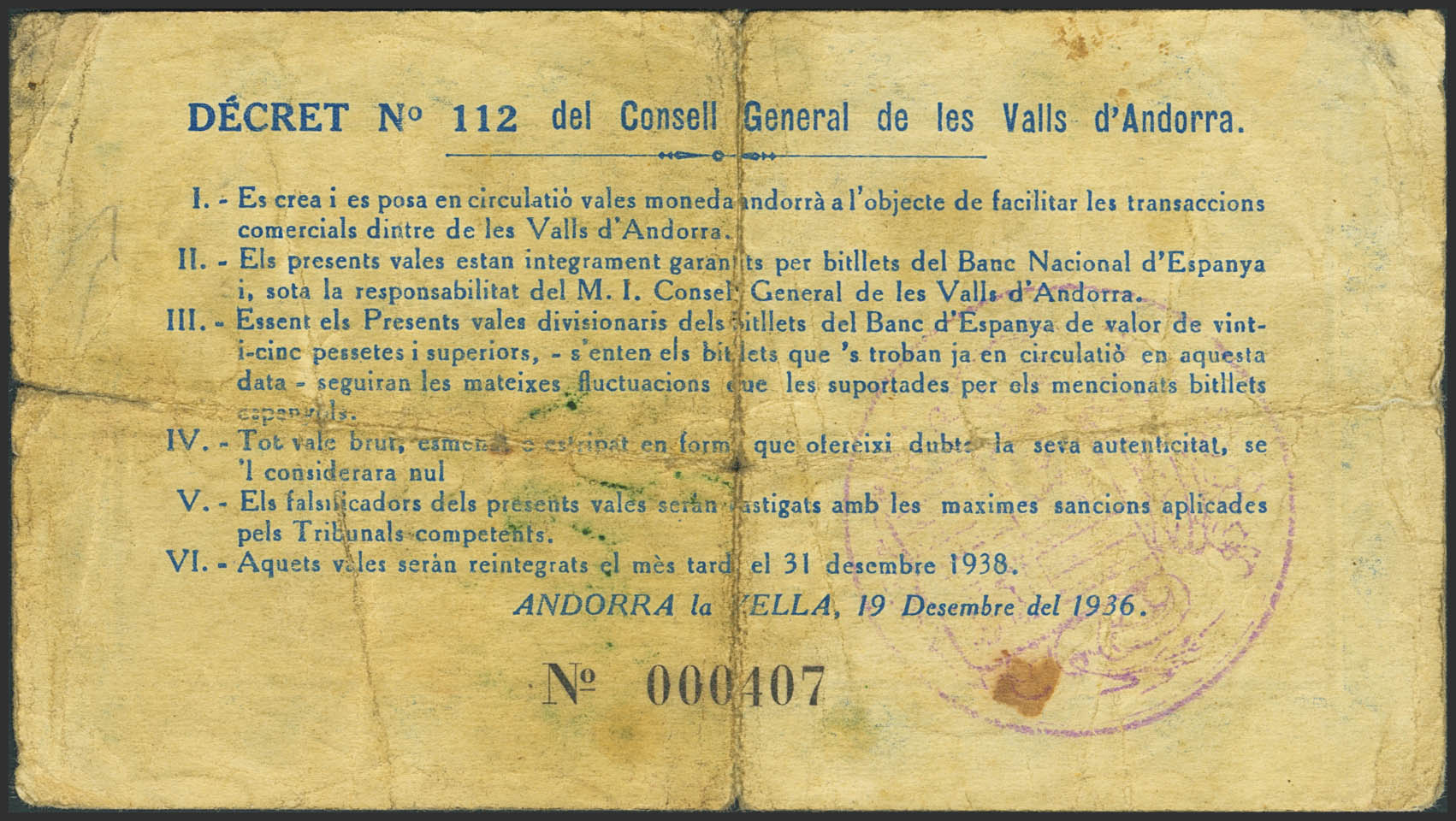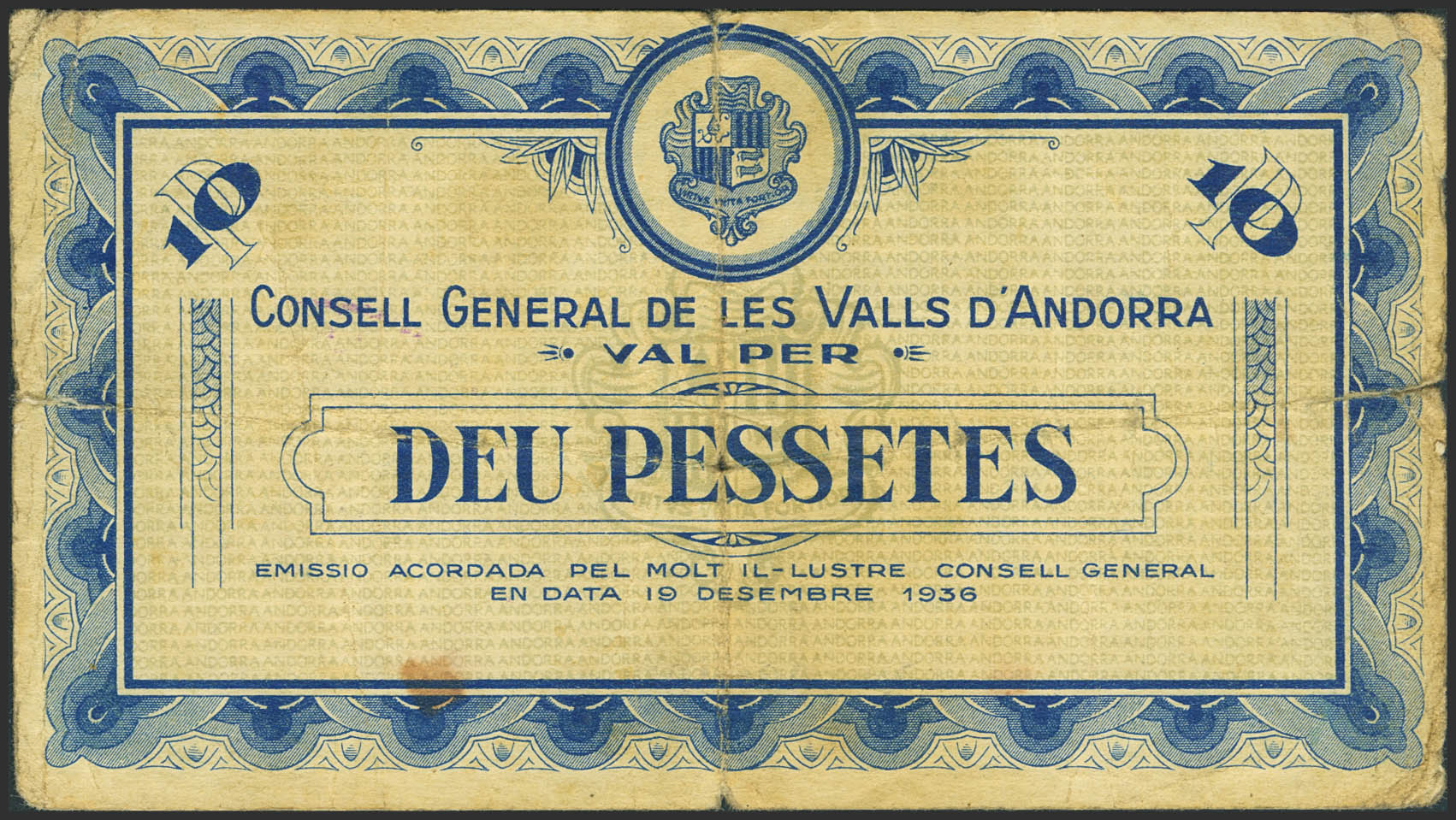 ANDORRA. 10 Pessetes. 19 de Diciembre de 1936. Sin serie. (Edifil 2023: 8). Raro. BC.