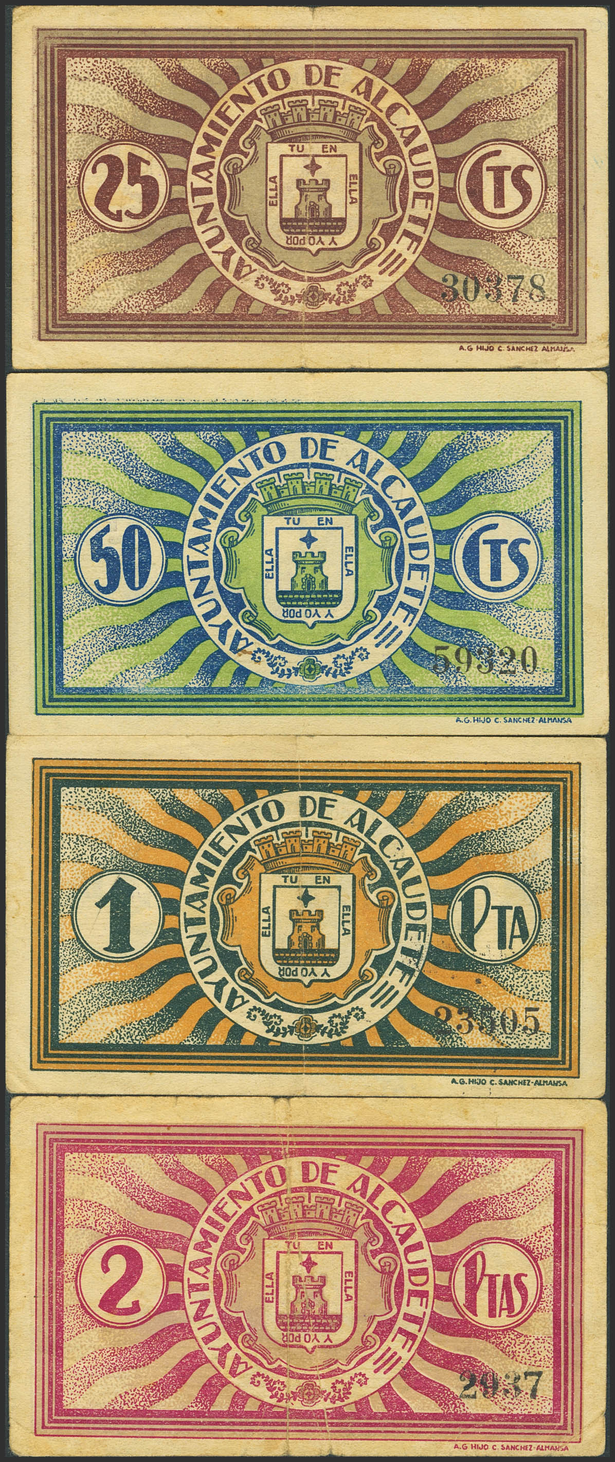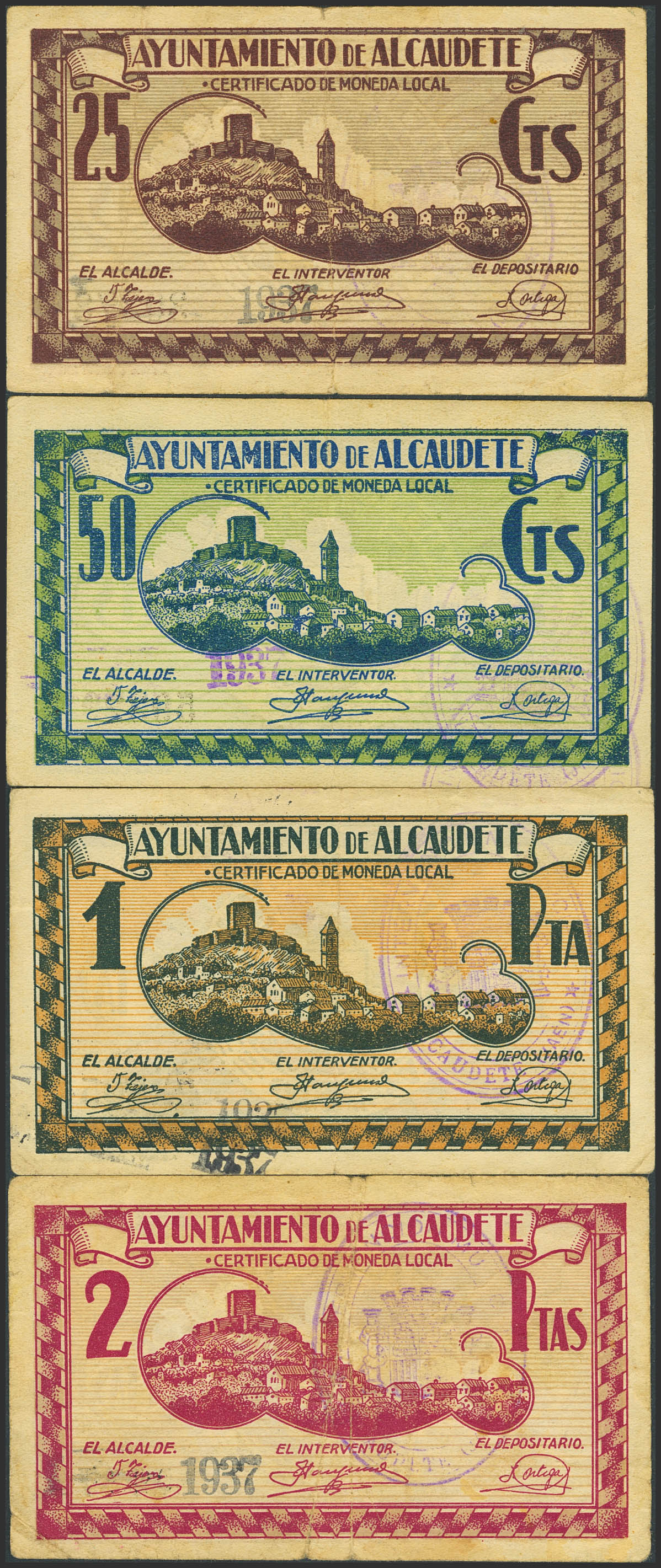 ALCAUDETE (JAEN). 25 Céntimos, 50 Céntimos, 1 Peseta y 2 Pesetas. 1937. (González: 310/13). Inusual serie completa. MBC.