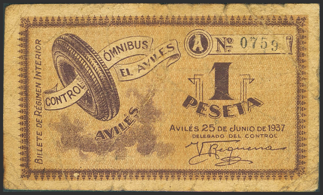 AVILES (ASTURIAS). 1 Peseta. 25 de Junio de 1937. Serie A. (González: 797). Muy raros. MBC-.