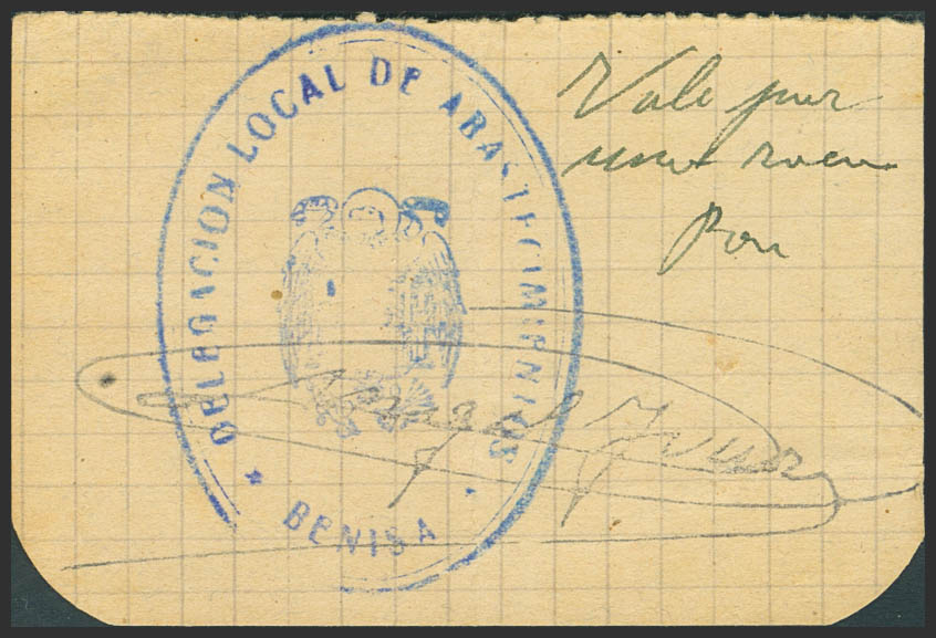 BENISA (ALICANTE). Vale por 1 pan. (1937ca). (González: No catalogado). EBC-.