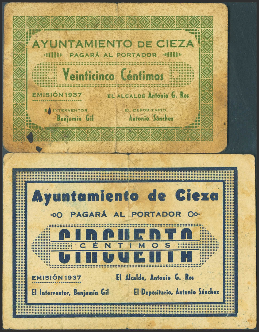 CIEZA (MURCIA). 25 Céntimos y 50 Céntimos. 1937. (González: 1965, 1966). MBC.