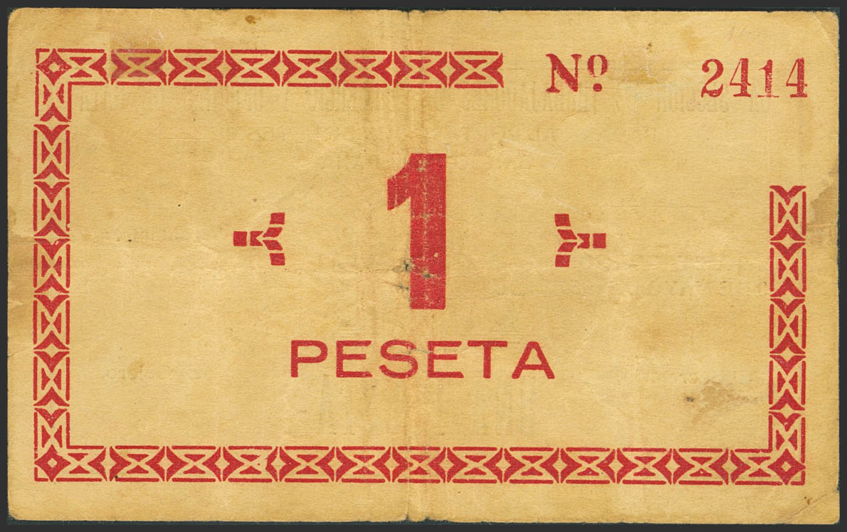 GATA DE GORGOS (ALICANTE). 1 Peseta. 20 de Mayo de 1937. (González: 2634). Muy raro. MBC-.