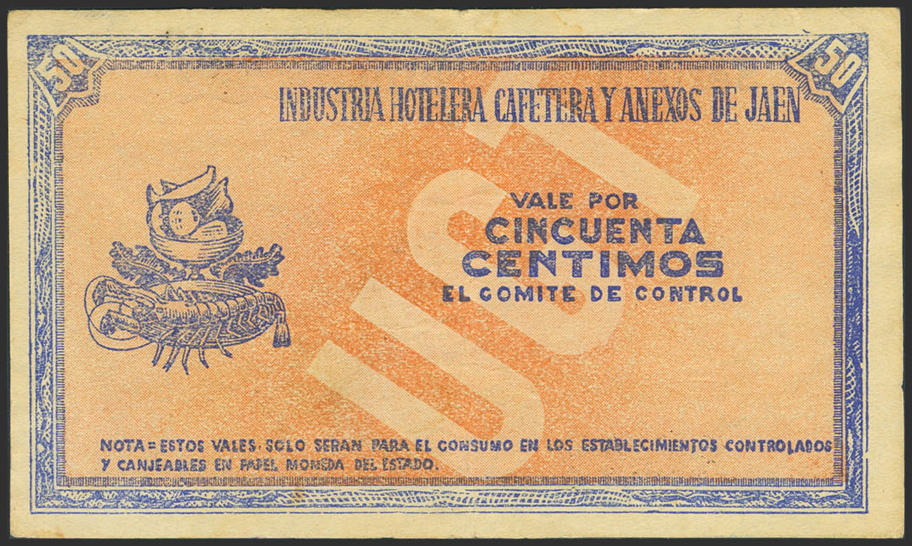 JAEN. 50 Céntimos. (1937ca). (González: 2984). Inusual. MBC-.