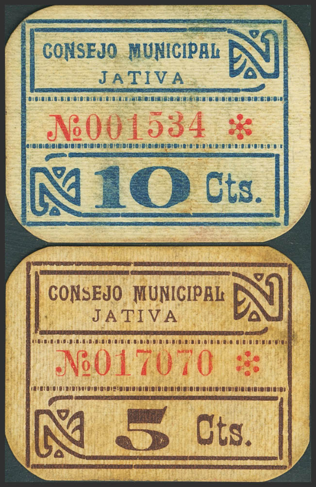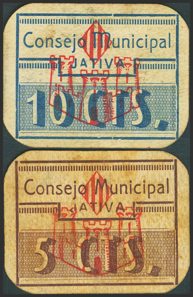 JATIVA (VALENCIA). 5 Céntimos y 10 Céntimos. (1937ca). (González: 3027/28). Inusual serie completa, especialmente en esta calidad. SC--.