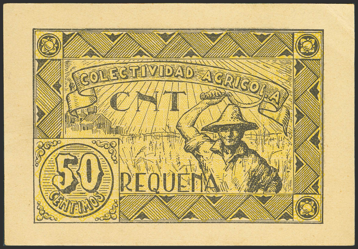 REQUENA (VALENCIA). 50 Céntimos. (1937ca). (González: 4493). Muy raro, especialmente en esta calidad. SC--.