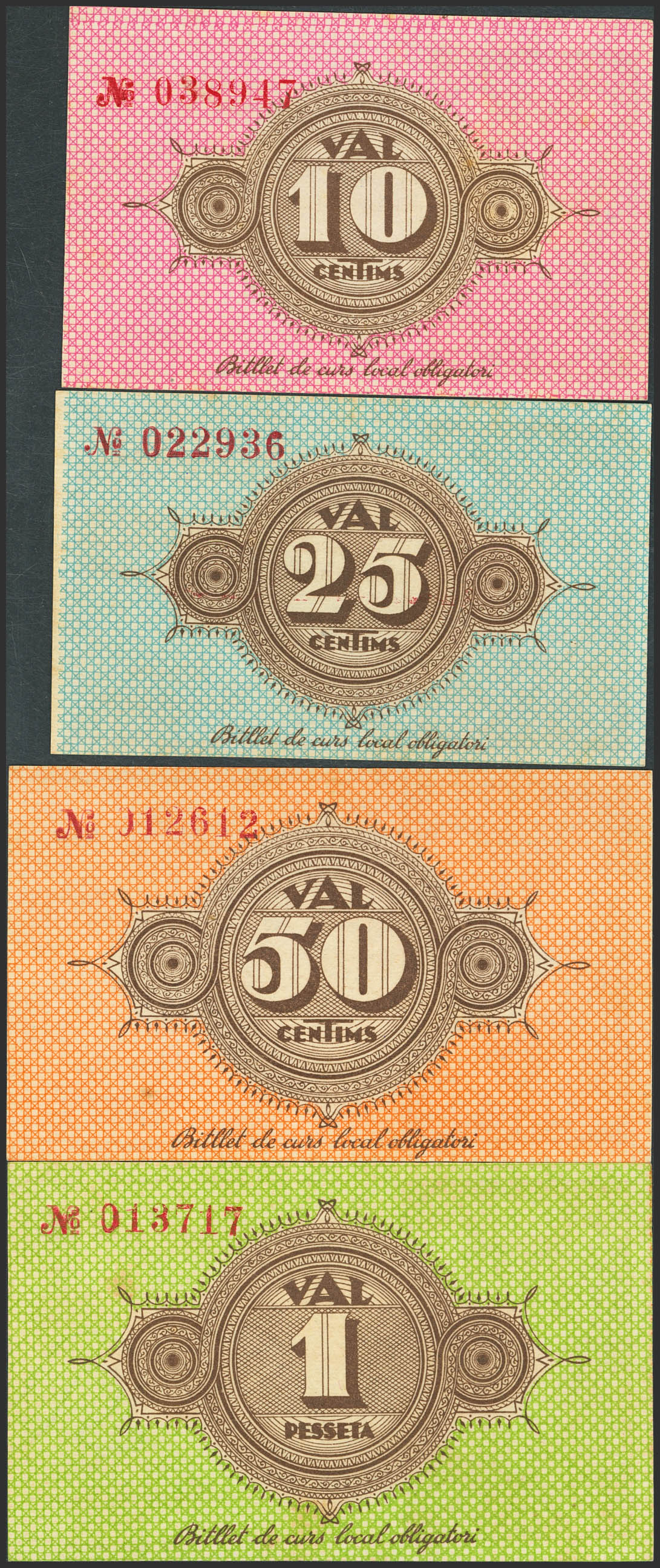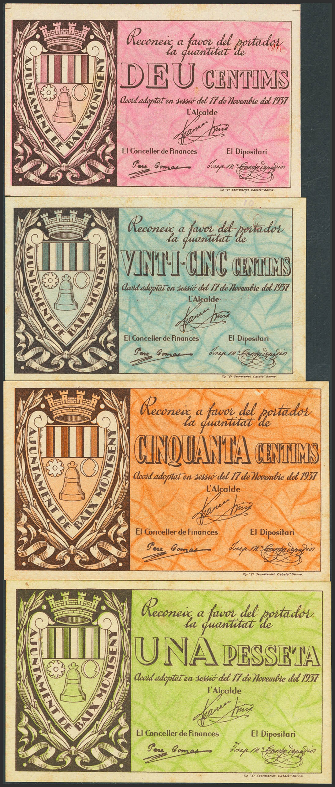 BAIX MONTSENY (BARCELONA). 10 Céntimos, 25 Céntimos, 50 Céntimos y 1 Peseta. 17 de Noviembre de 1937. (González: 6480/83). Inusual serie completa en esta calidad. SC-.