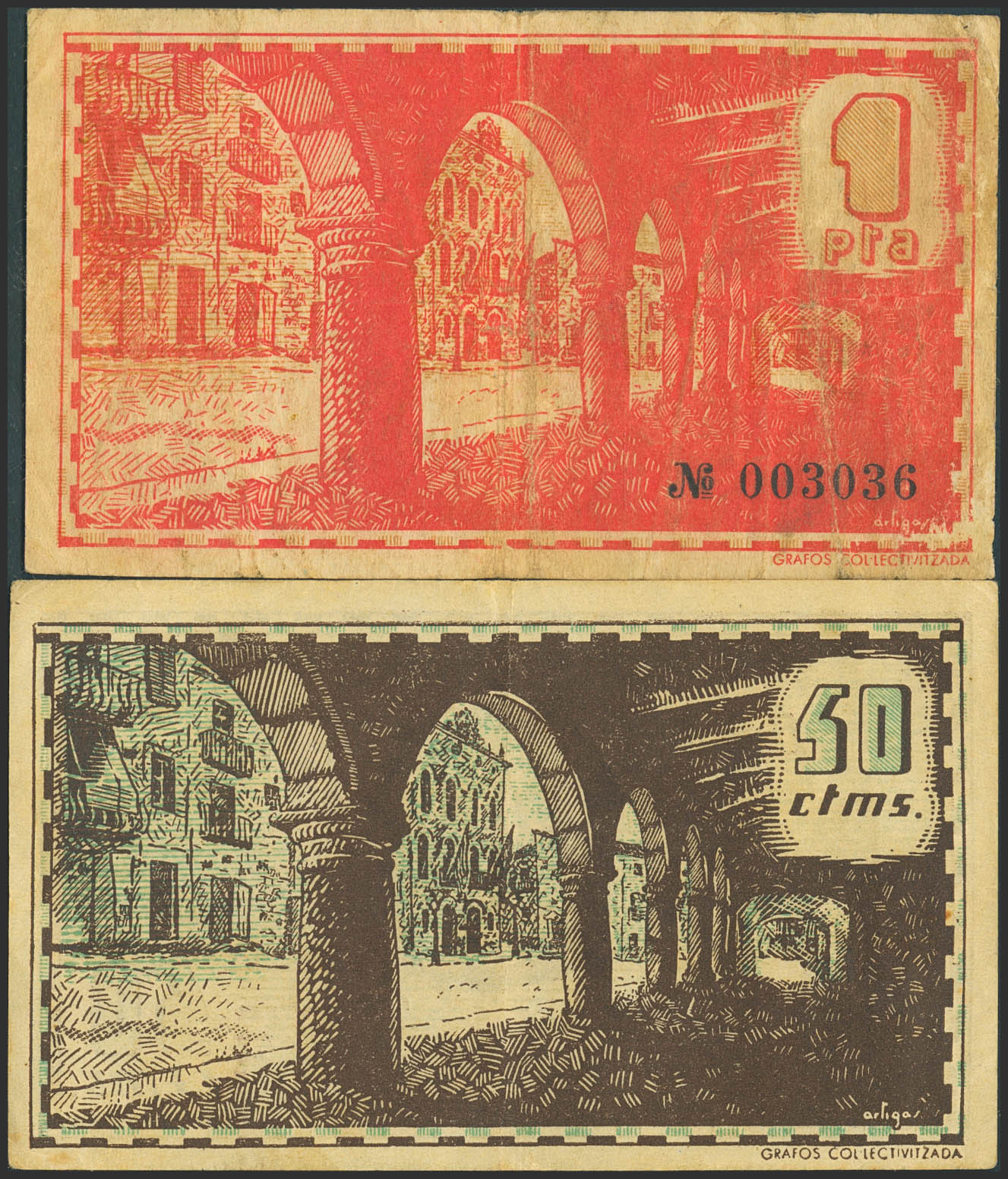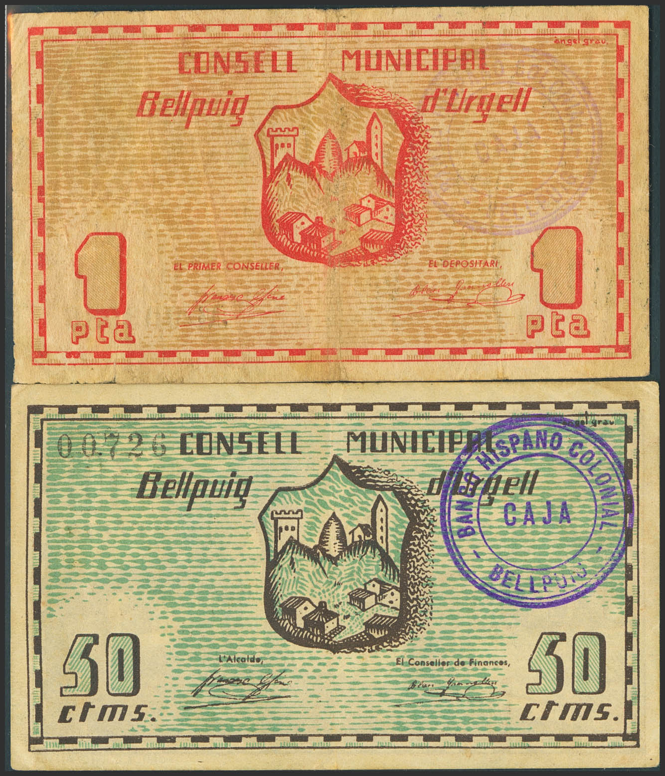 BELLPUIG DE URGELL (LERIDA). 50 Céntimos y 1 Peseta. (1937ca). (González: 6981/82). Serie completa. EBC+/MBC-.