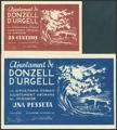DONZELL DE URGEL (LERIDA). 25 Céntimos y 1 Peseta. (1937ca). (González: 7719/20). Muy rara serie completa, especialmente en esta calidad. SC.