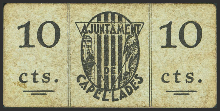 CAPELLADES (BARCELONA). 10 Céntimos. 27 de Septiembre de 1937. (González: 7382). Inusual. EBC+++.