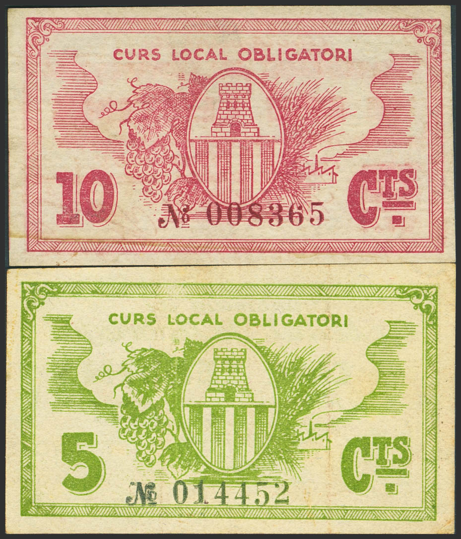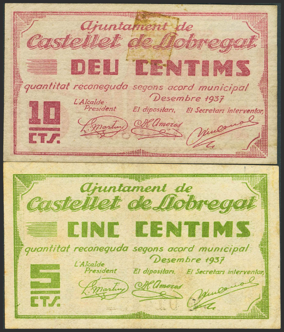 CASTELLET DE LLOBREGAT (BARCELONA). 5 Céntimos y 10 Céntimos. Diciembre de 1937. (González: 7452/53). Serie completa. EBC-.