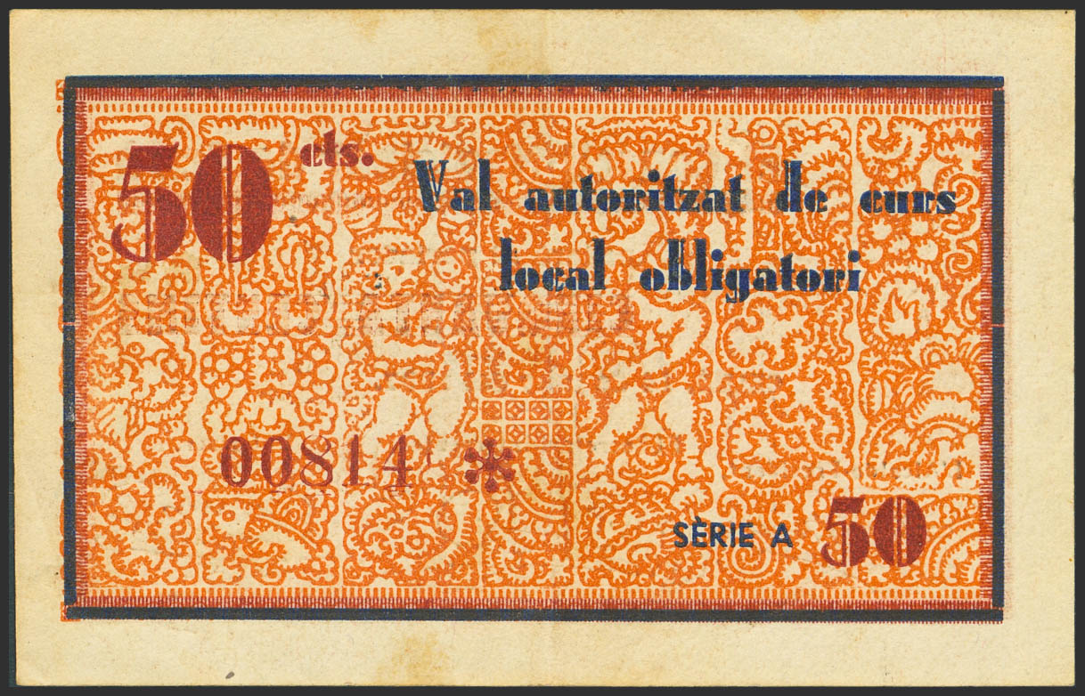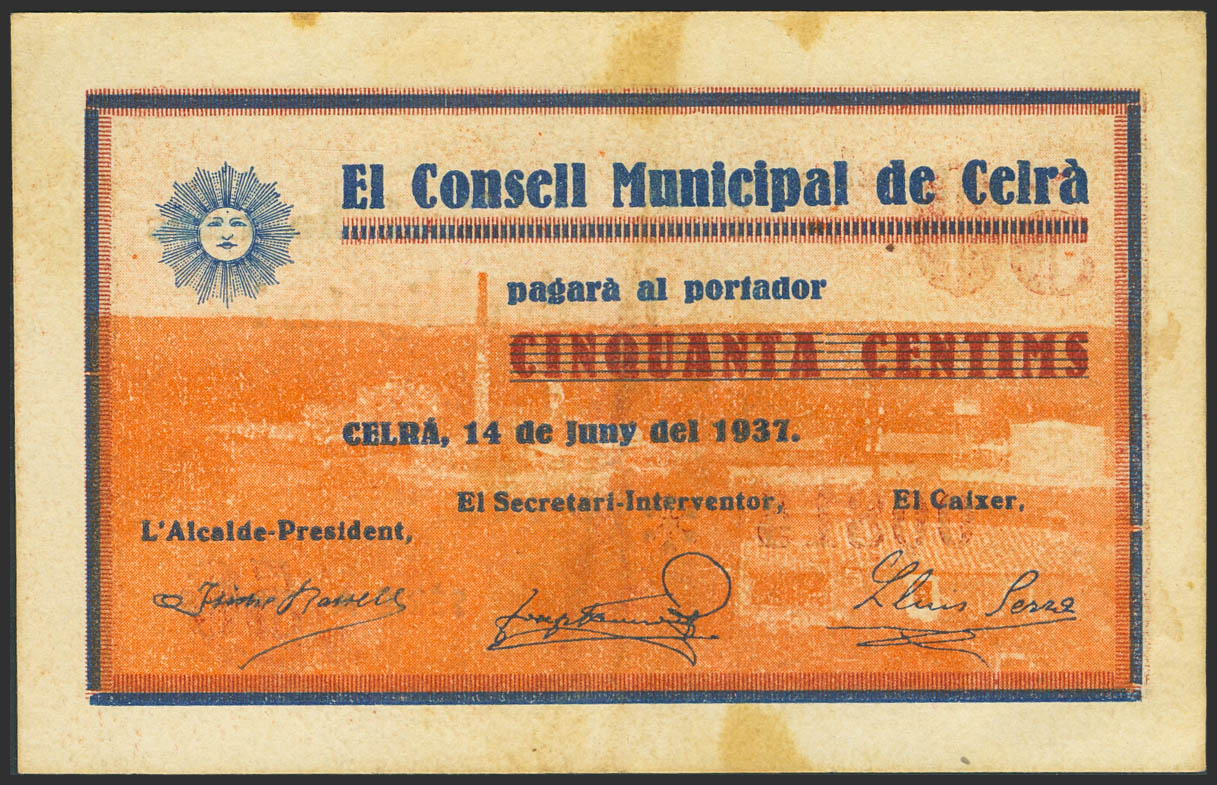 CELRA (GERONA). 50 Céntimos. 14 de Junio de 1937. Serie A. (González: 7544). MBC+.