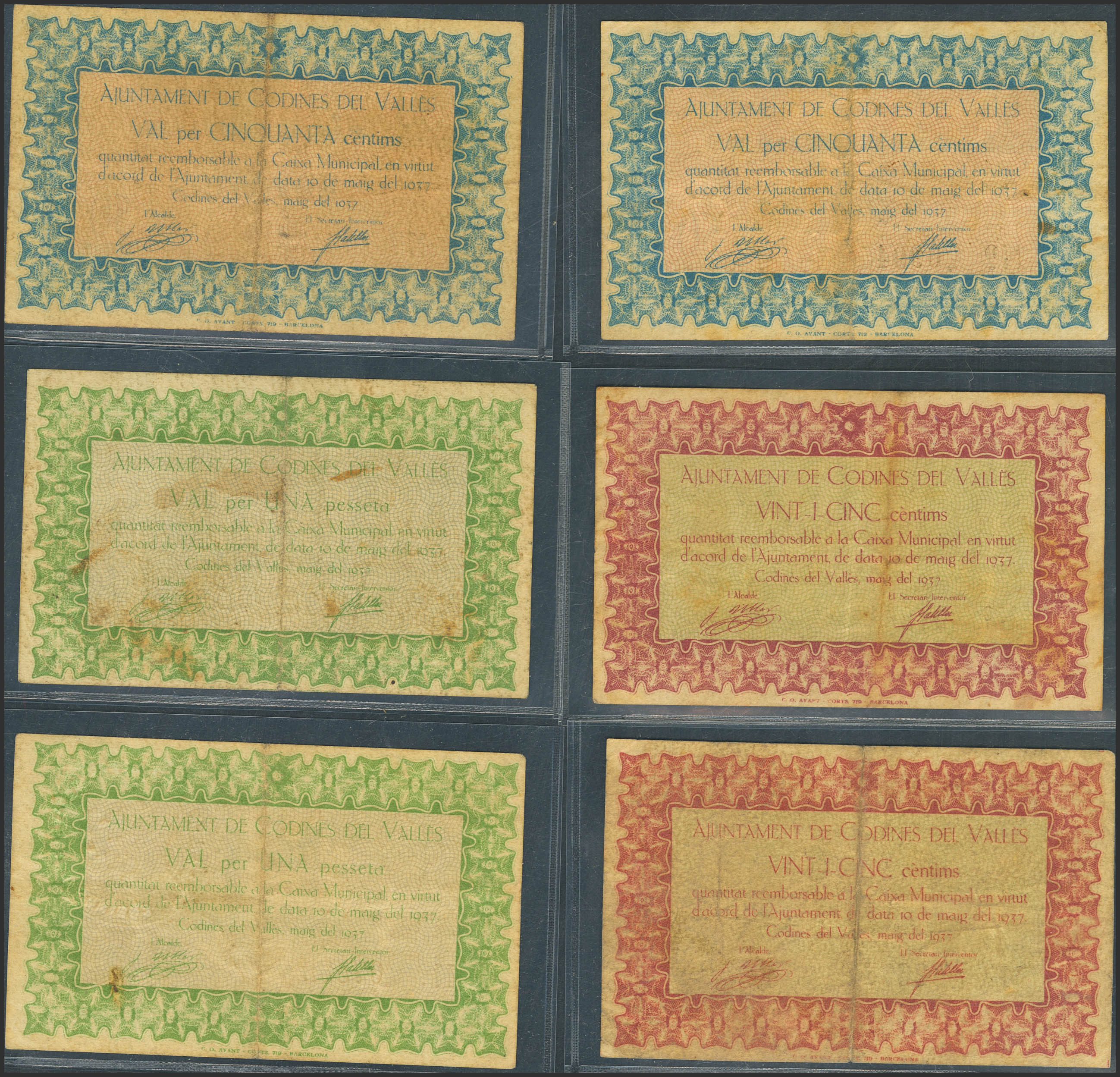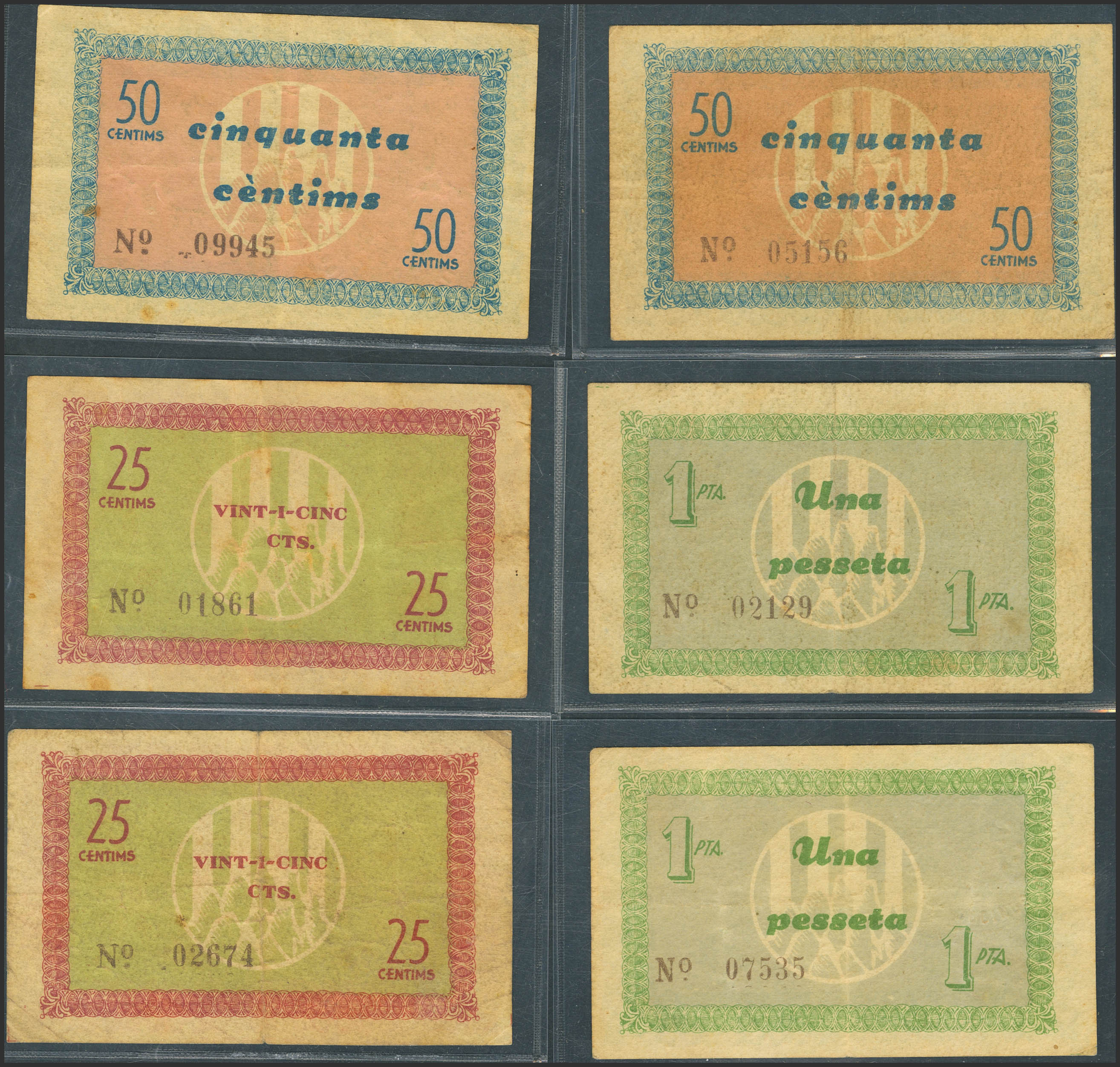 Conjunto de 2 series completas de 25 Céntimos, 50 Céntimos y 1 Peseta emitidas en Mayo de 1937. (González: 7613/15). MBC-.