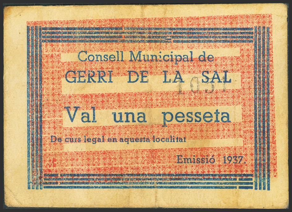 GERRI DE LA SAL (LERIDA). 1 Peseta. (1937ca). (González: 8019). Raro. MBC.