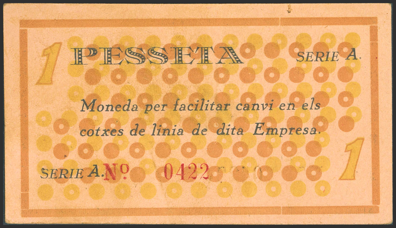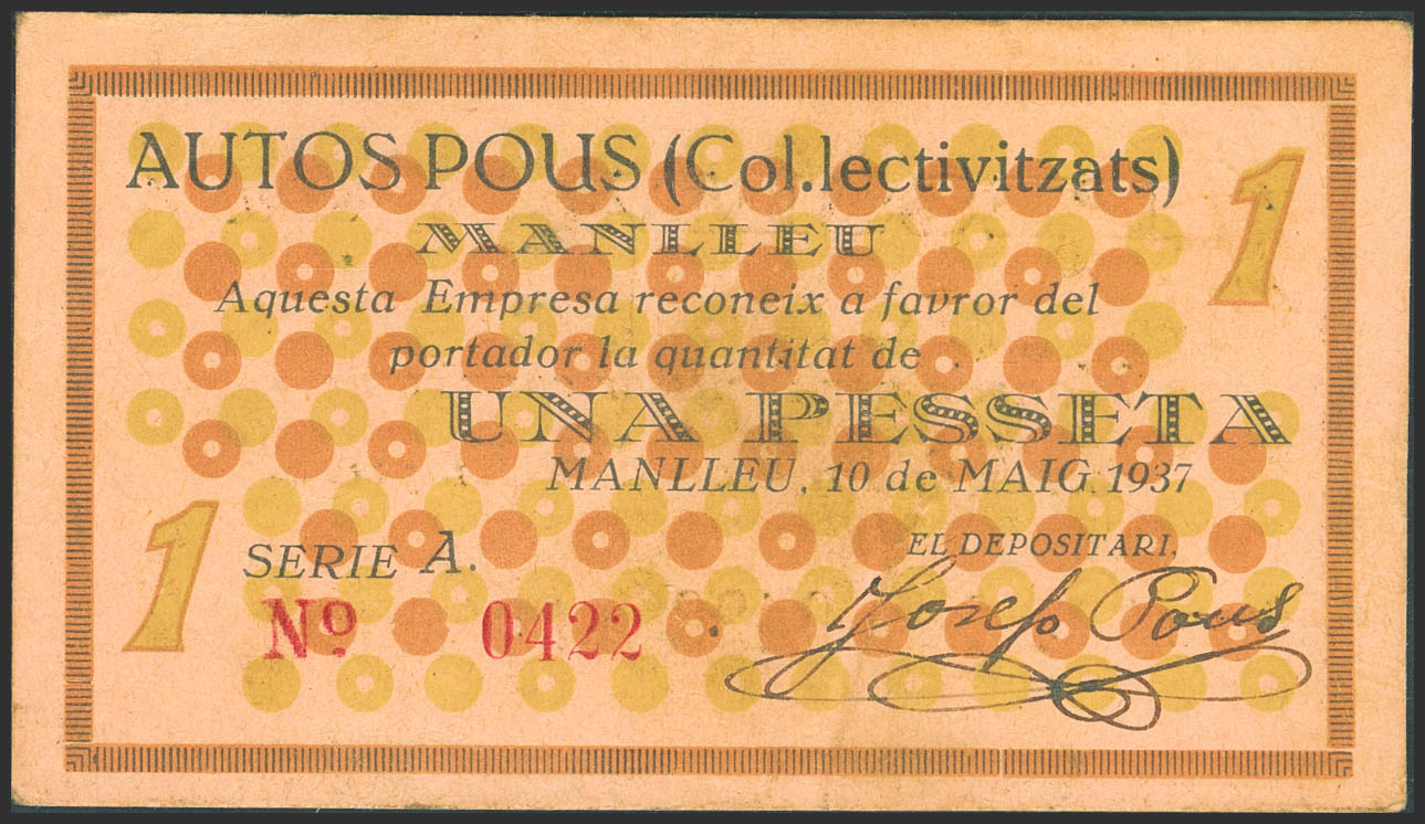 MANLLEU (BARCELONA). 1 Peseta. 10 de Mayo de 1937. Serie A. (González: 8491). Raro. EBC.