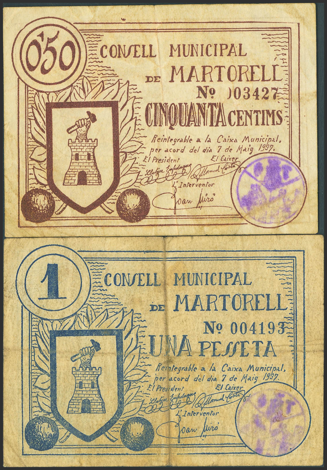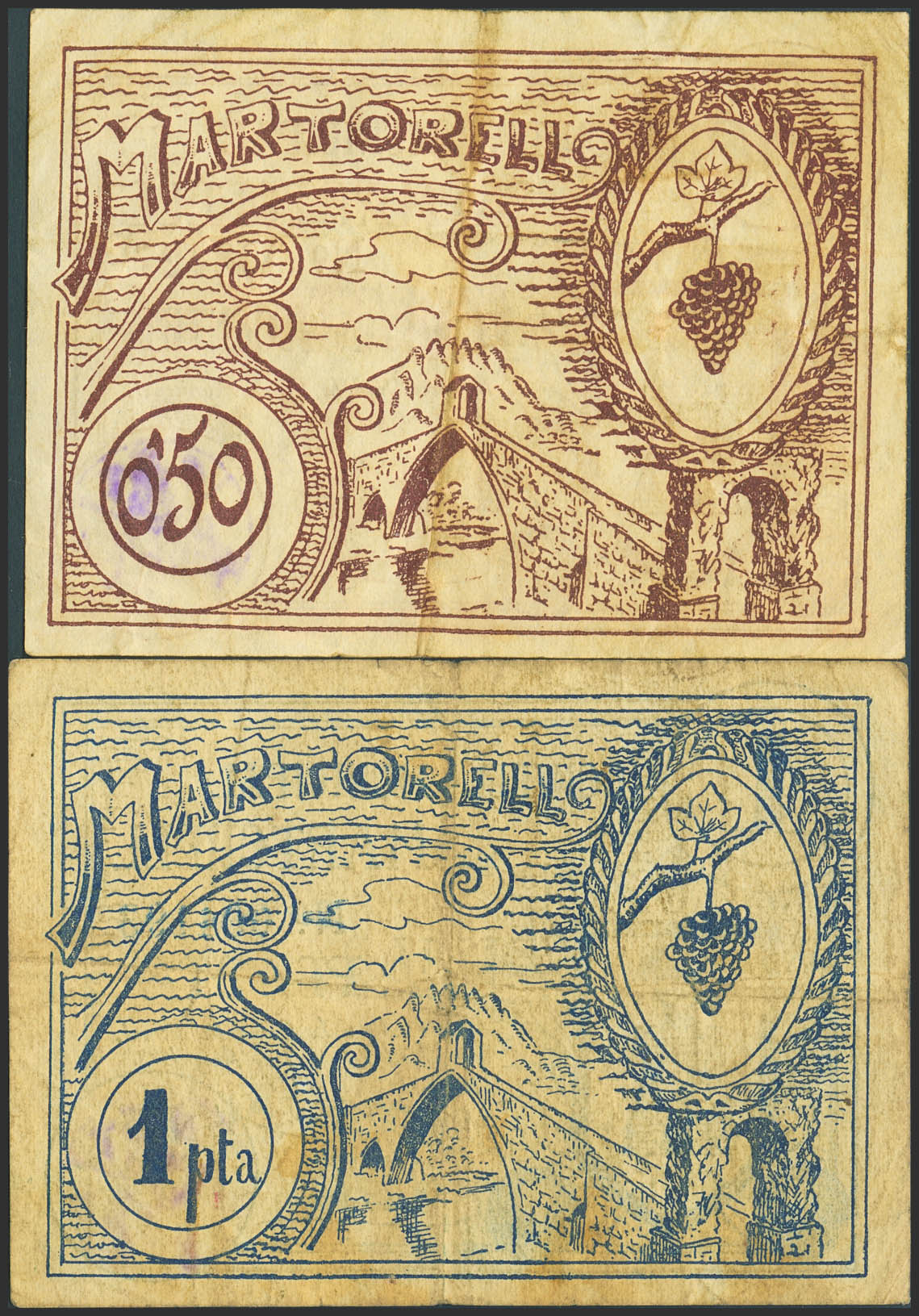 MARTORELL (BARCELONA). 50 Céntimos y 1 Peseta. 7 de Mayo de 1937. (González: 8578/79). Serie completa. MBC-.
