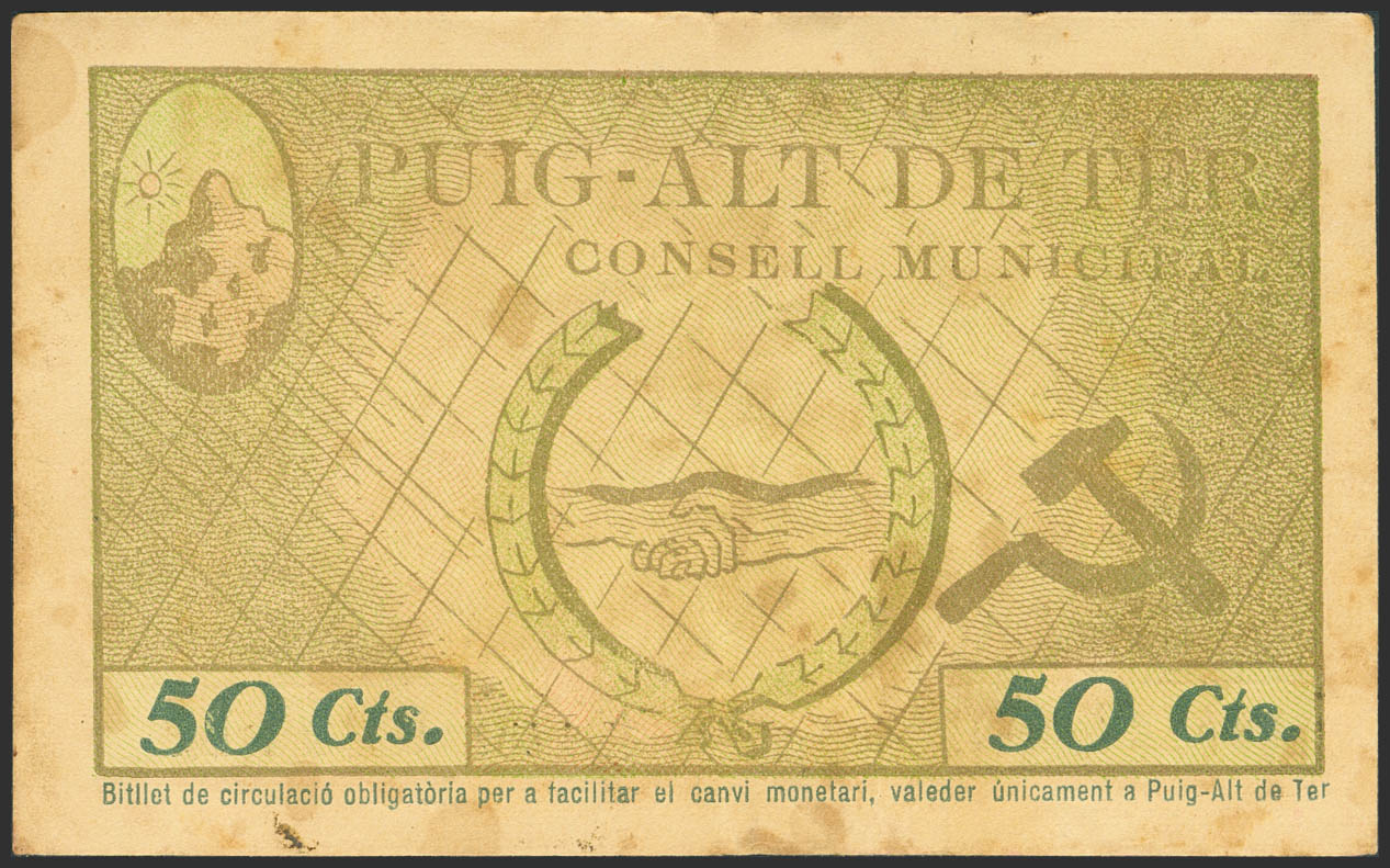 PUIG ALT DE TER (GERONA). 50 Céntimos. (1937ca). (González: 9474). Inusual. MBC+.