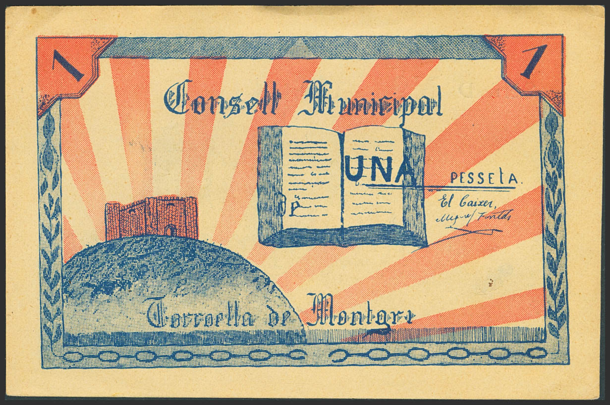 TORROELLA DE MONTGRI (GERONA). 1 Peseta. (1937ca). Serie D. (González: 10391). Raro. EBC+++.
