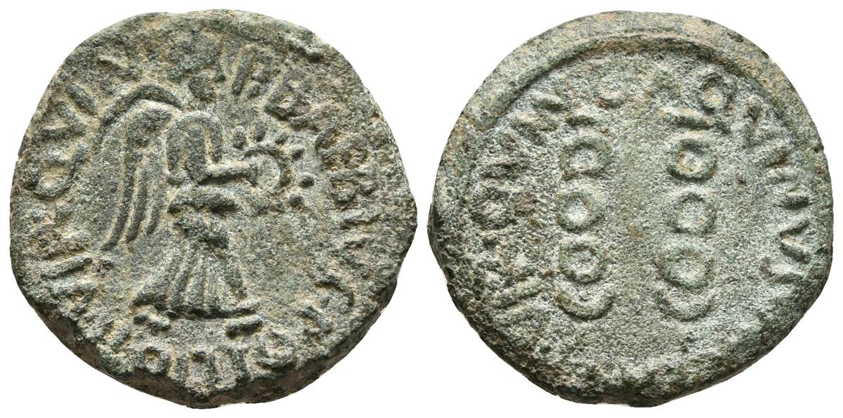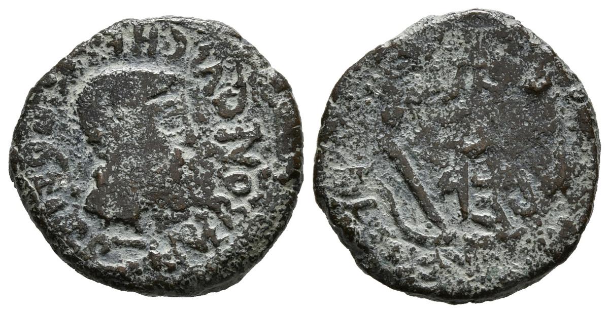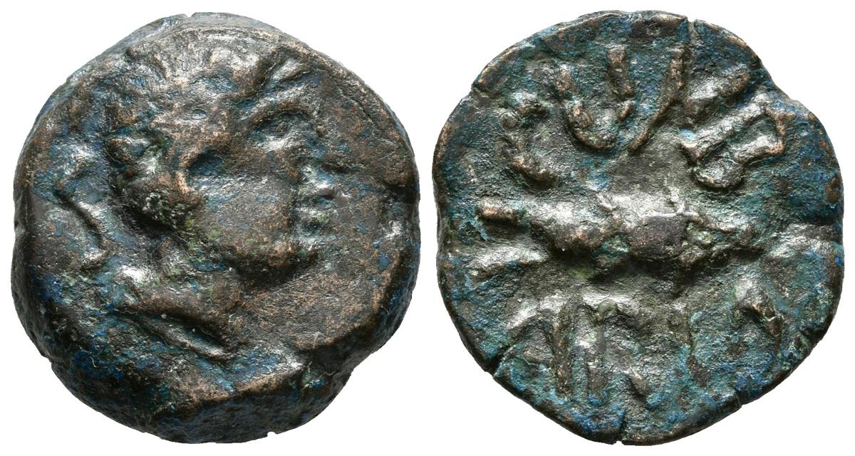 REINO SELEUCIDA, Alejandro II Zabinas. Ae22. (Ae. 6,86g/22mm). 128-122 a.C. Apamea en el Orontes. (HGC 9, 1166). Anv: Cabeza de Dionisos jóven con corona de flores. Rev: Tyche con alas a izquierda portando timón y cornucopia, alrededor leyenda: ΒΑΣΙΛΕΩΣ ΑΛΕΞΑΝΔΡΟΥ. MBC+.