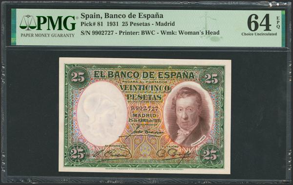 1000 Pesetas. 21 de Noviembre de 1936. Serie B. (Edifil 2023: 423a, Pick: 103a). Muy raro en esta excepcional calidad, apresto original. EBC+++. Encapsulado PMG58EPQ. (este billete no presenta doblez central, sólo unas pequeñas arruguitas, esta ha sido la razón de PMG de calificarlo con 58EPQ, procede de la subasta de Martí Hervera del 9 de Noviembre de 2024 vendido por 2700 euros más las correspondientes comisiones, entonces fue calificado con un SC con la mención de las arruguitas).