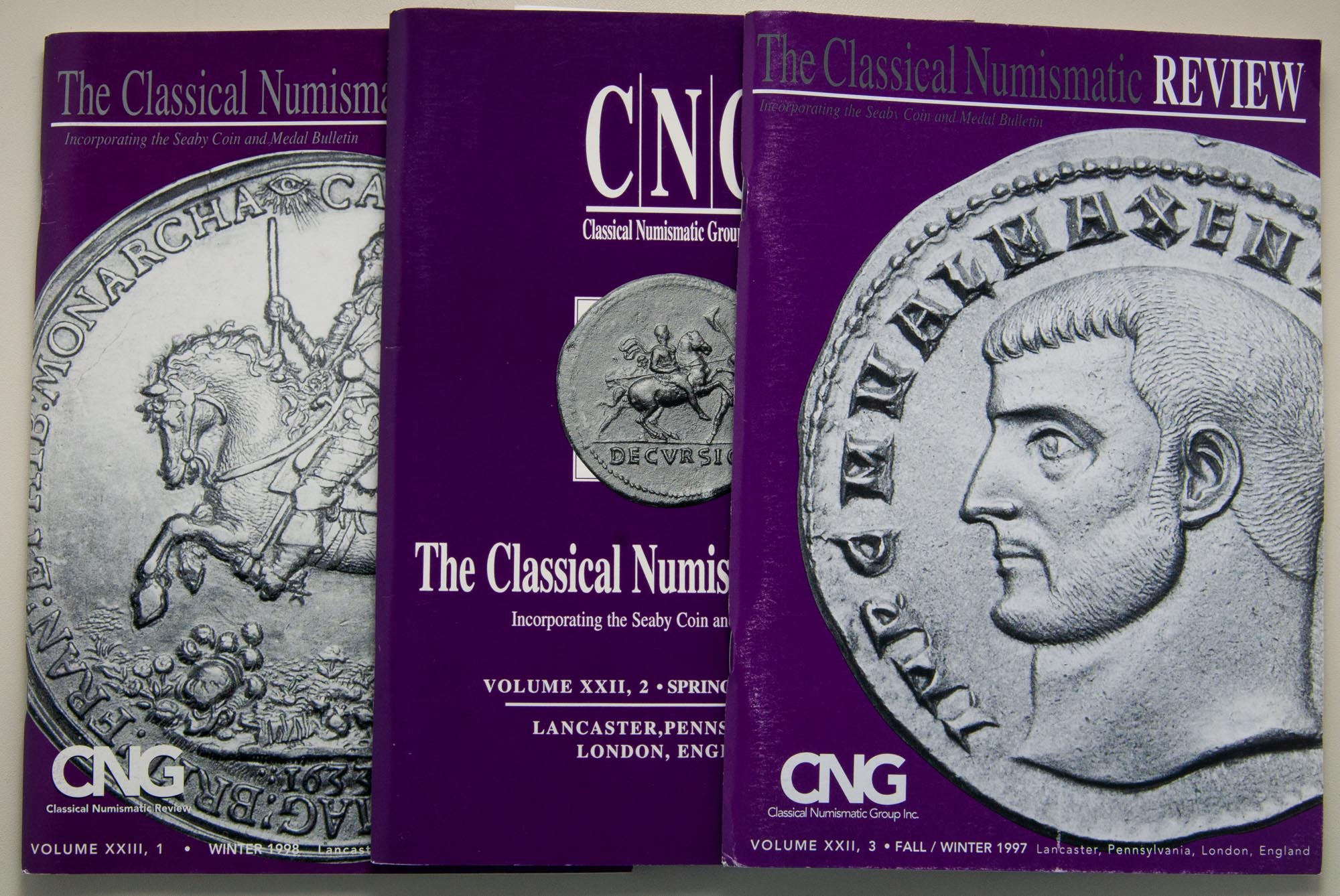Conjunto de tres revistas: "The Classical Numismatic Review" editadas por: Classical Numismatic Group de los años: 1997 y 1998.
