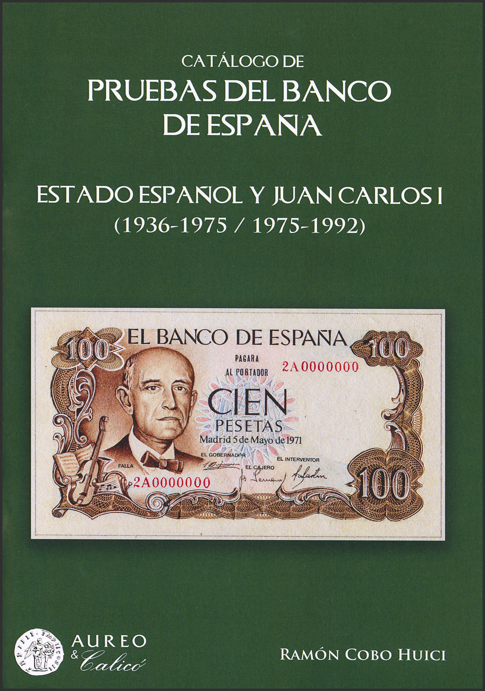CATALOGO DE PRUEBAS DEL BANCO DE ESPAÑA, ESTADO ESPAÑOL Y JUAN CARLOS I (1936-1975 / 1975-1992). Edición Aureo y Calicó, 2025. Ramón Cobo Huici.