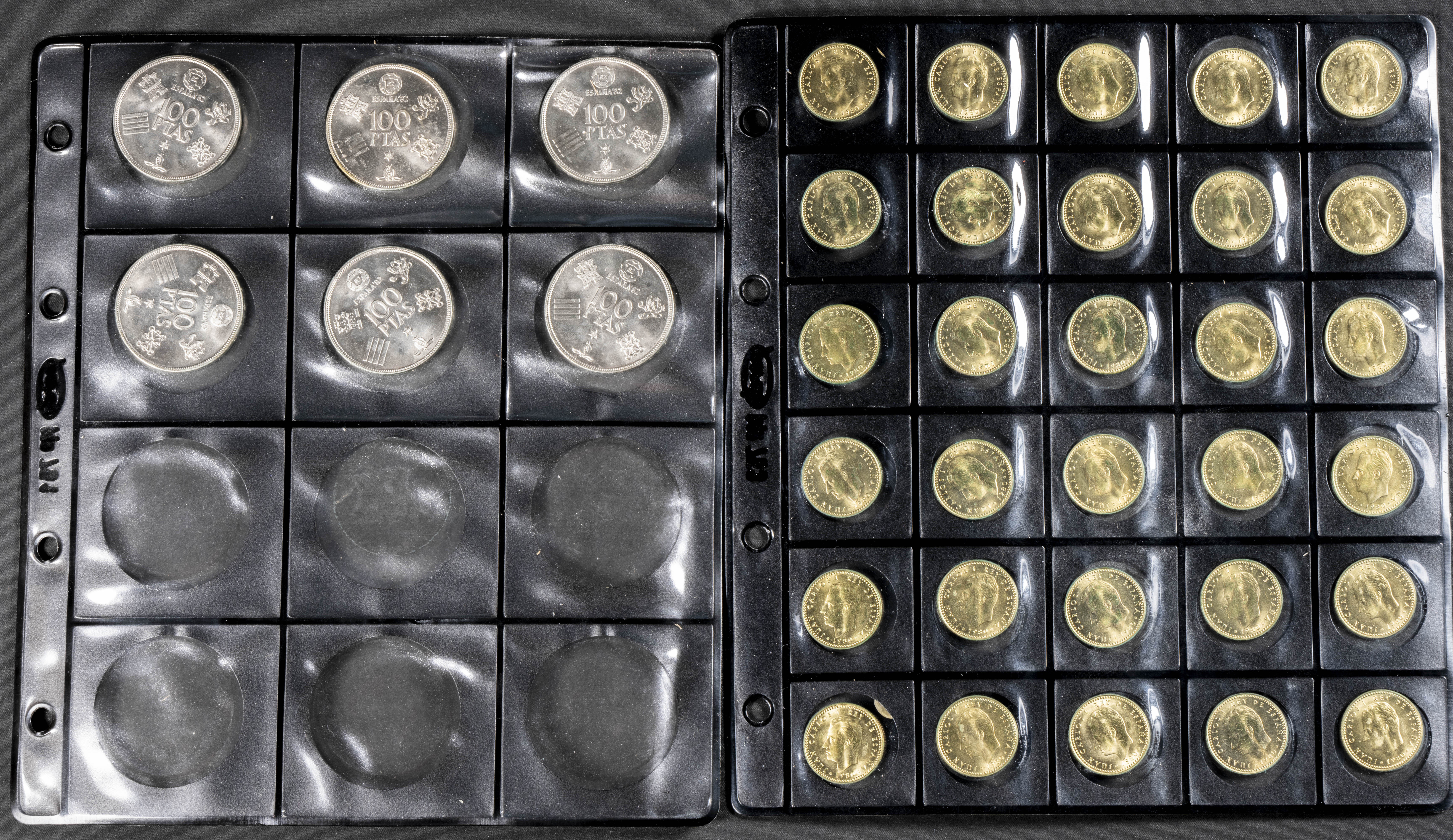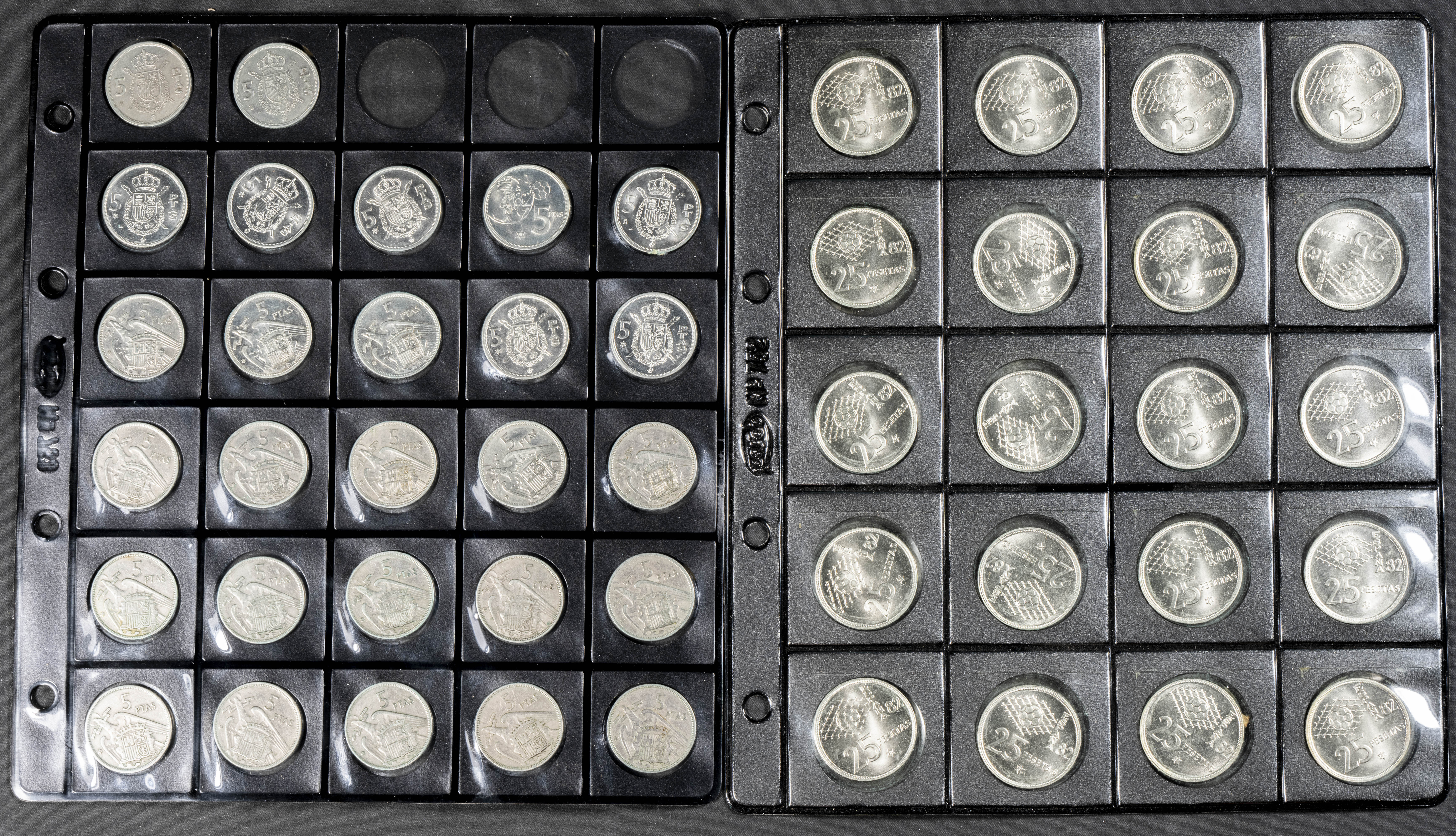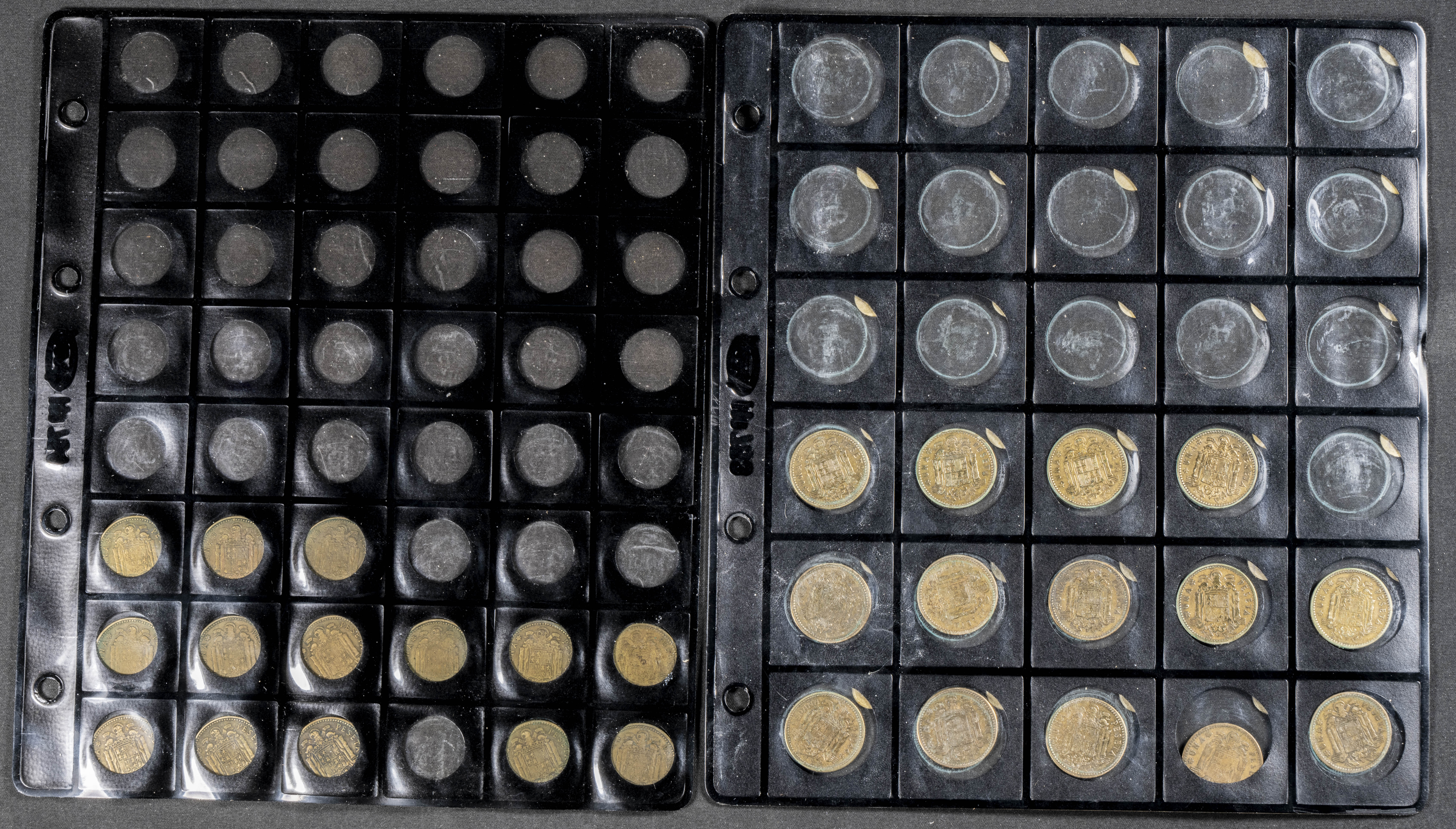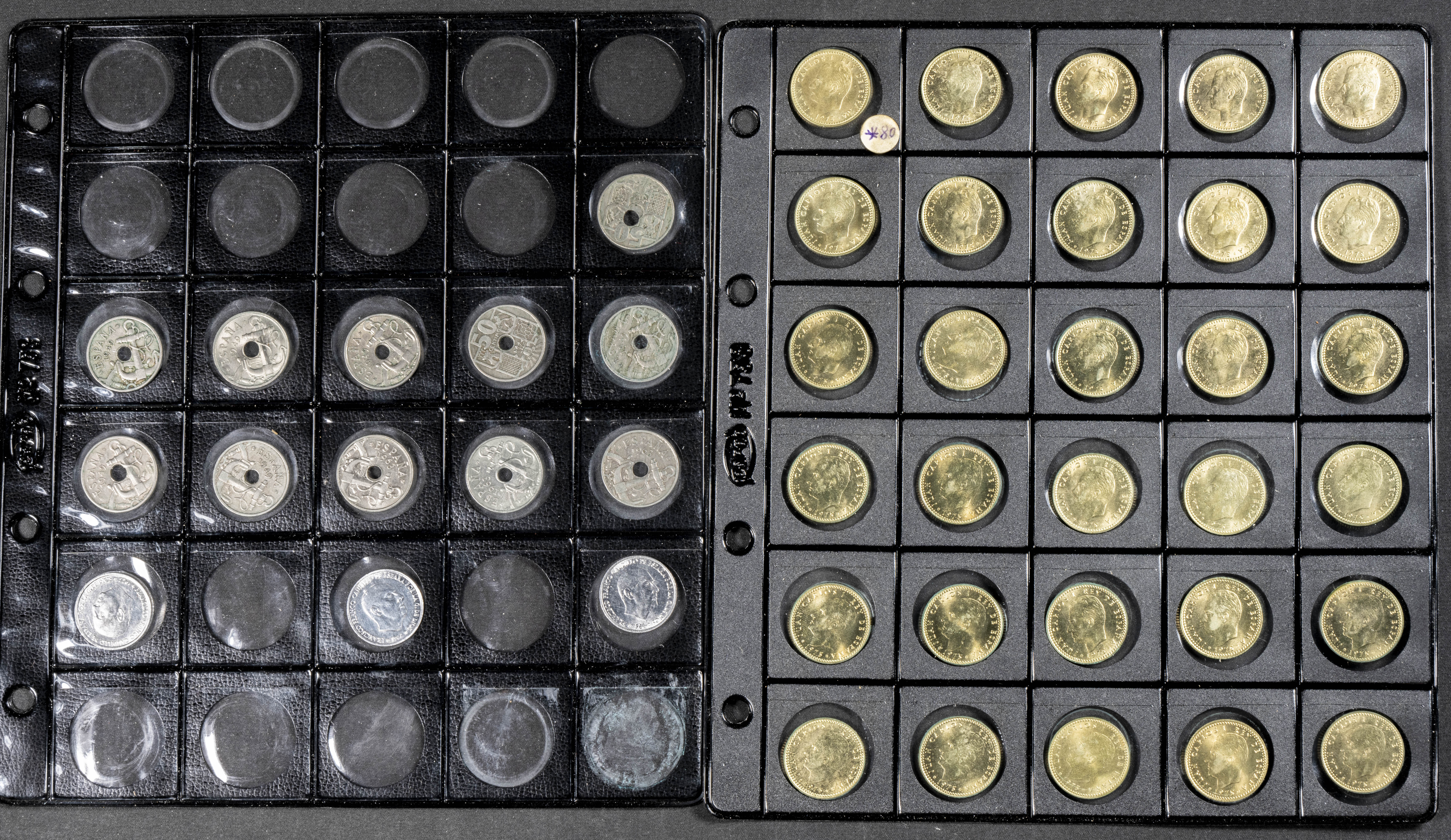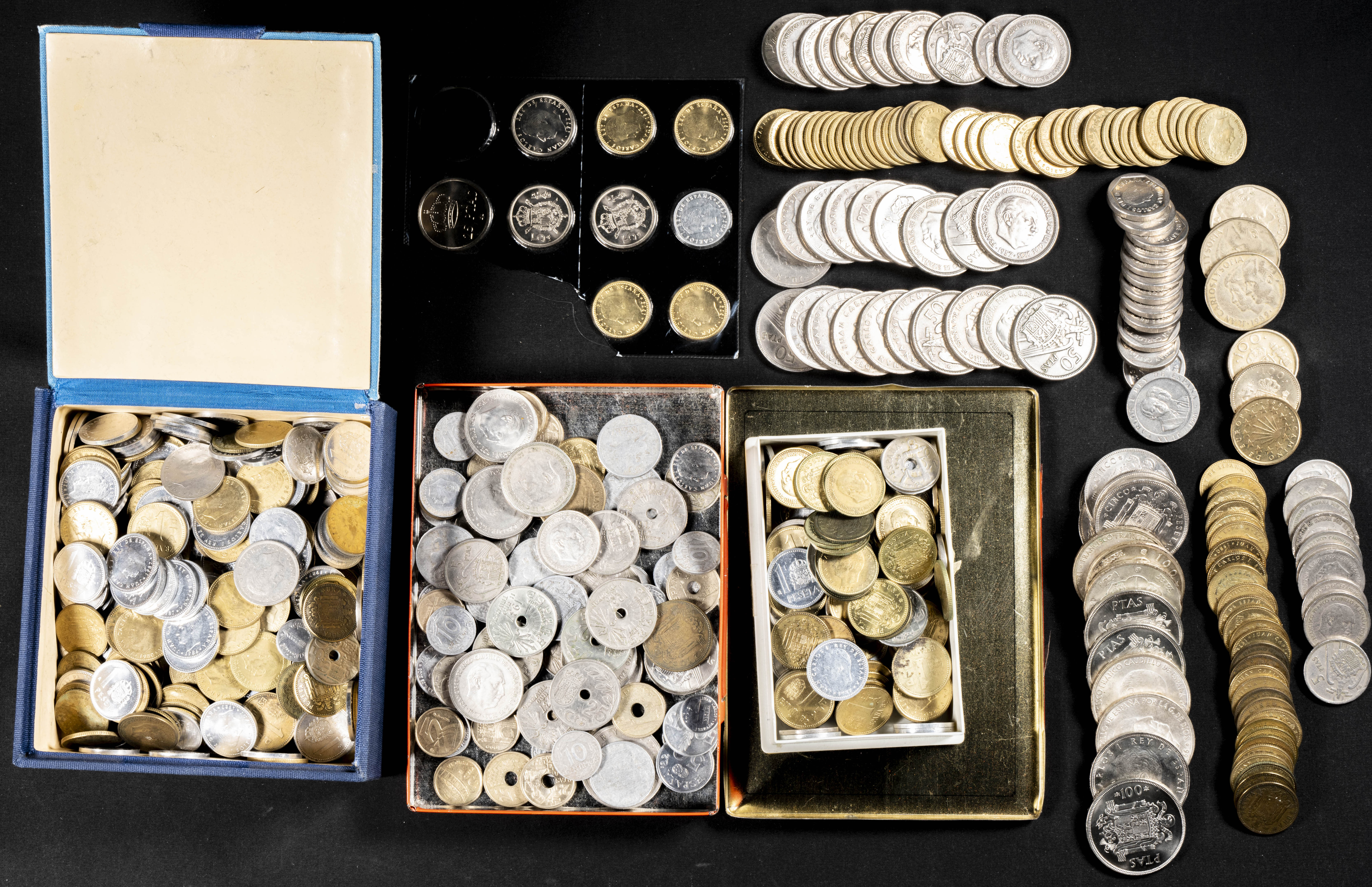 ESTADO ESPAÑOL Y CONTEMPORANEO. Interesante conjunto formado por cientos de monedas de diferentes formatos, módulos, materiales así como estados de conservación. El conjunto incluye un importante número de piezas de 1 Peseta de 1947 con diferentes estrellas así como varias unidades de 100 pesetas de plata de 1966. A EXAMINAR.