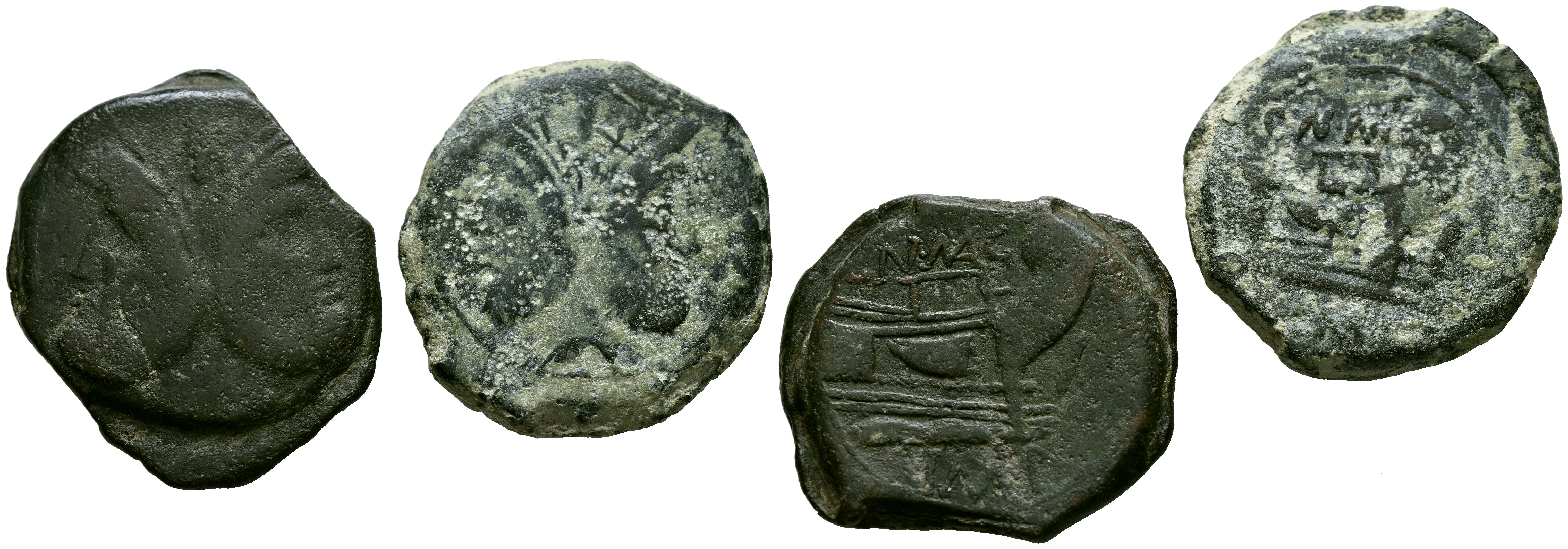 Conjunto de dos Ases acuñados bajo Pompeyo Magno. A EXAMINAR.