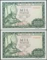 1000 Pesetas. 19 de Noviembre de 1965. Pareja correlativa. Serie T. (Edifil 2017: 471b). Apresto original. SC-.