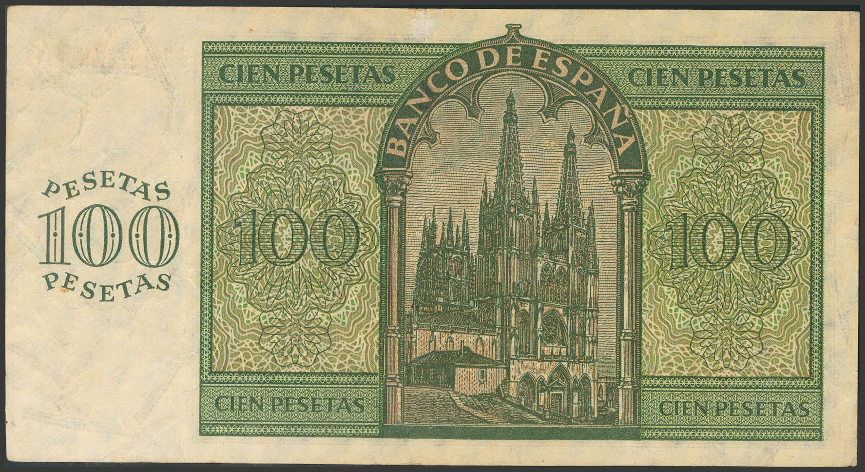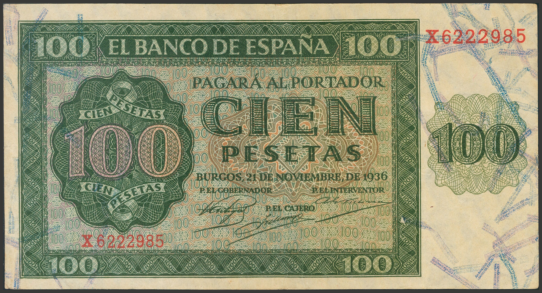 100 Pesetas. 21 de Noviembre de 1936. Serie X, última serie emitida. (Edifil 2017: 421a). Conserva gran parte del apresto origial. EBC+.