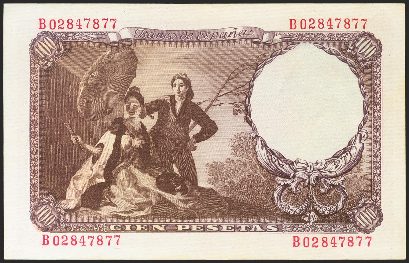 100 Pesetas. 19 de Febrero de 1946. Serie B, última serie emitida. (Edifil 2021: 451b). Apresto original. SC-.