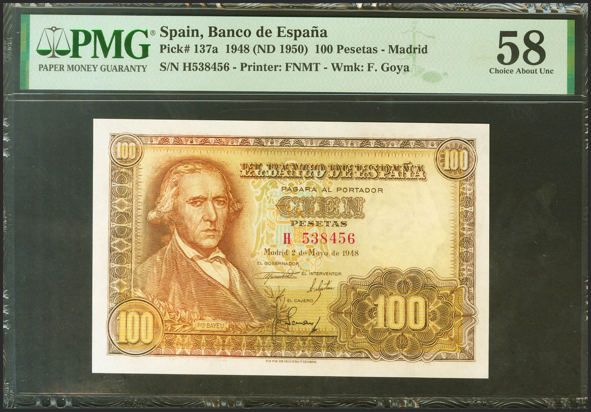 100 Pesetas. 2 de Mayo de 1948. Serie H. (Edifil 2021: 456a, Pick: 137a). EBC++. Encapsulado PMG58.