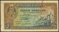 5 Pesetas. 4 de Septiembre de 1940. Serie K. (Edifil 2021: 443a). Conserva gran parte de su apresto original. SC-.