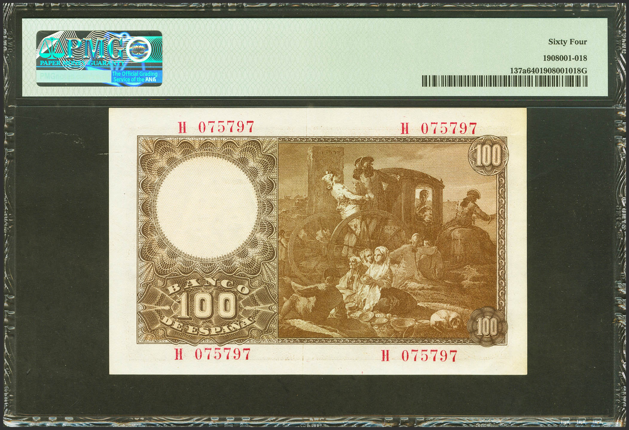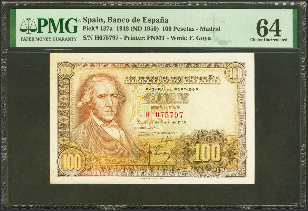 100 Pesetas. 2 de Mayo de 1948. Serie H. (Edifil 2021: 456a, Pick: 137a). SC. Encapsulado PMG64.