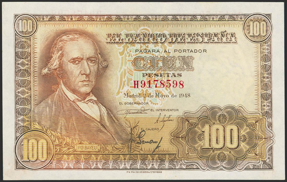 100 Pesetas. 2 de Mayo de 1948. Serie H. (Edifil 2023: 456a). Apresto original. SC-.