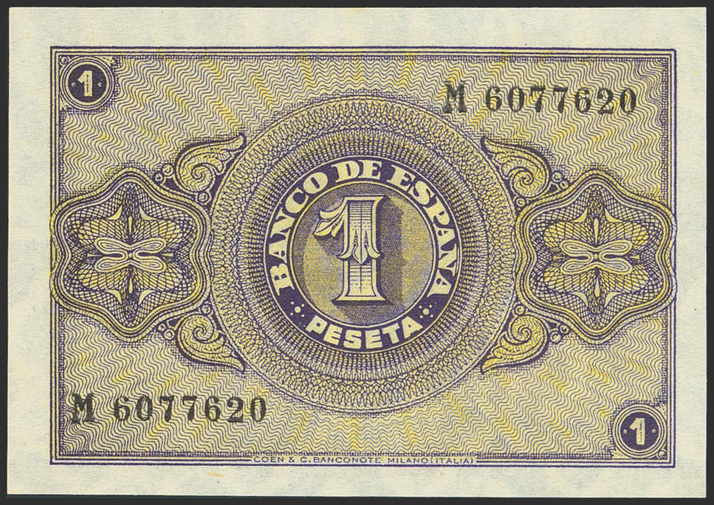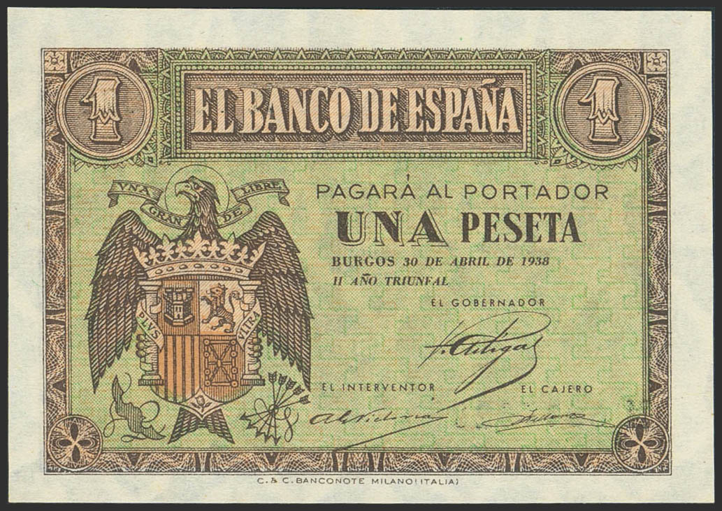 1 Peseta. 30 de Abril de 1938. Serie M. (Edifil 2023: 428a). Apresto original. SC.
