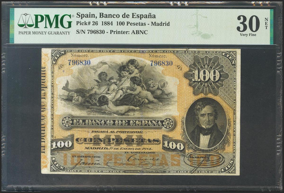 100 Pesetas. 1 de Enero de 1884. Sin serie. (Edifil 2017: 284). Inusual y profesionalmente restaurado. MBC+. Encapsulado PMG30.