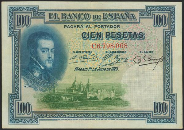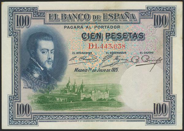 100 Pesetas. 15 de Agosto de 1928. Pareja correlativa. Sin serie. (Edifil 2021: 355). Inusual en esta calidad, apresto original. EBC+.