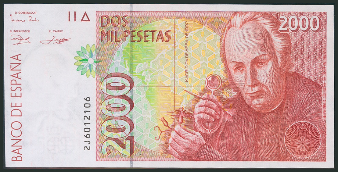 2000 Pesetas. 24 de Abril de 1992. Serie 2J y numeración capicúa. (Edifil 2017: 482Aa). SC.