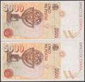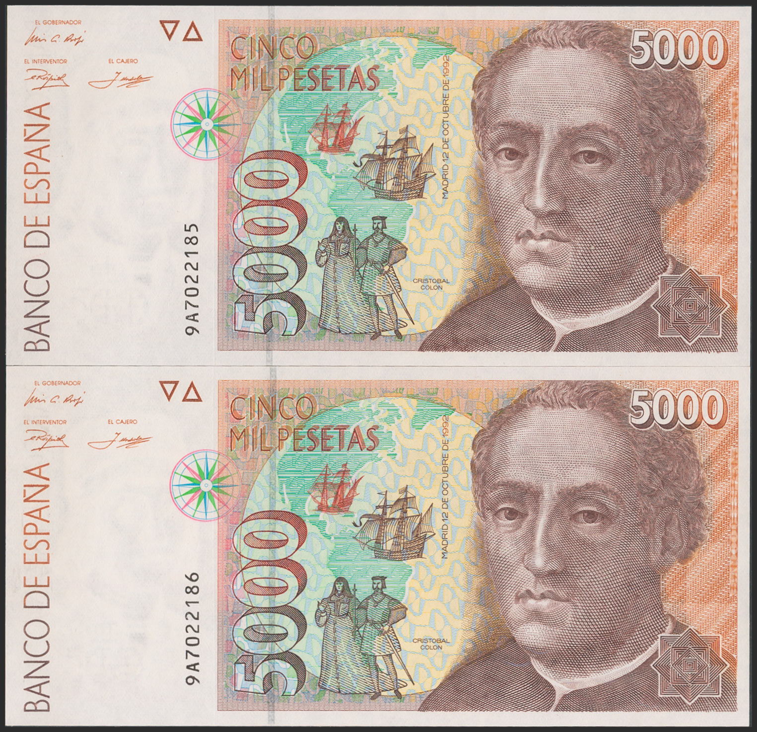 5000 Pesetas. 12 de Octubre de 1992. Pareja correlativa. Serie especial 9A. (Edifil 2017: 484b). SC.