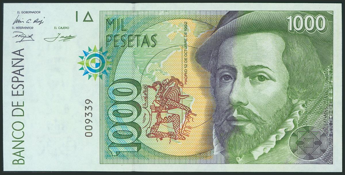 1000 Pesetas. 12 de Octubre de 1992. Sin serie y numeración baja y capicúa imperfecto. (Edifil 2017: 483). SC.